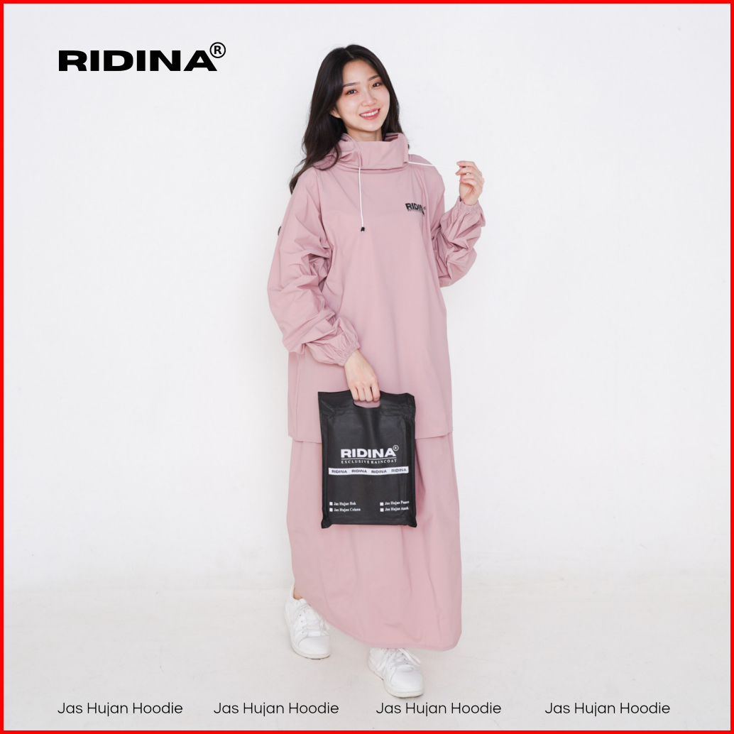 Jas Hujan Hoodie Setelan Rok Wanita Dewasa Bahan Pvc Tebal Elastis Anti Rembes By Ridina