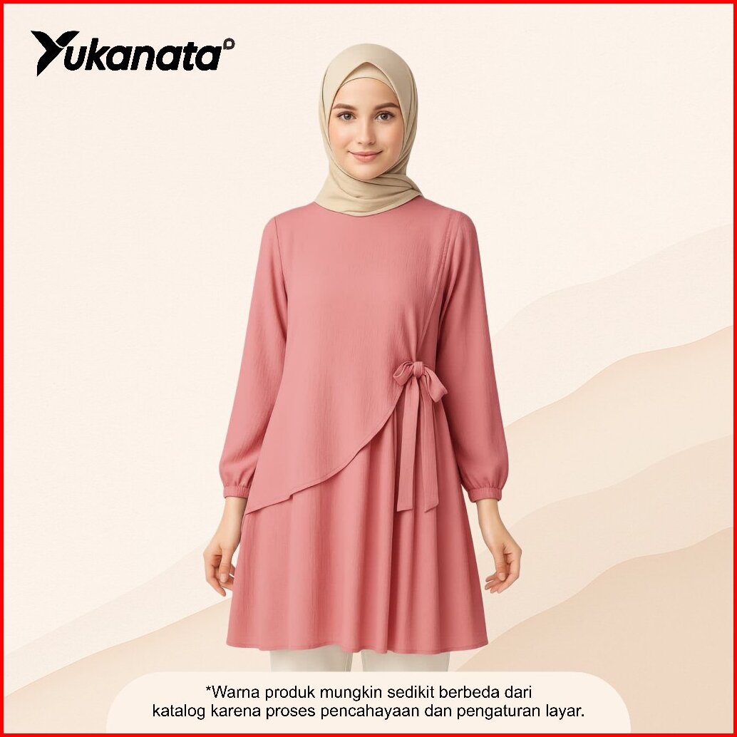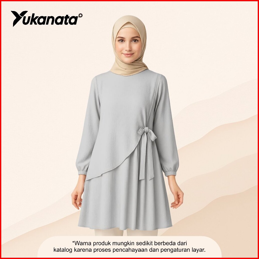 Yukanata.id - Qinara Tunik Ruffle Tali Samping Kiri Anggun Elegan Modern Simple Stylish Fashionable Ootd Muslimah Kekini