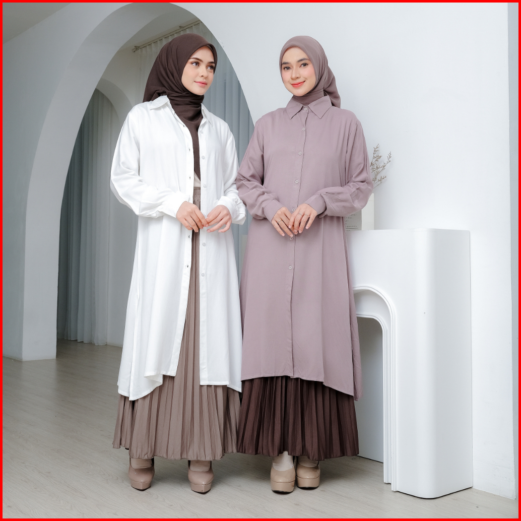 Tsurayya Long Tunik Polos Rayon Twill Premium Baju Atasan Wanita Muslim Jumbo Kerja Lengan Panjang