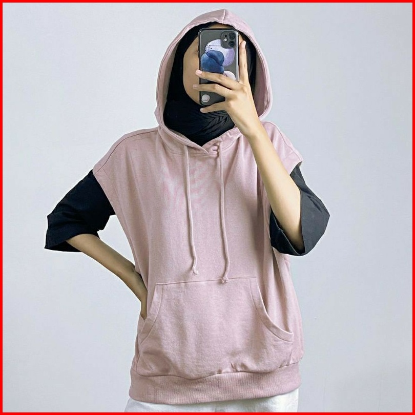 Rompi Hoodie Polos Wanita Pria Bahan Fleece Tebal