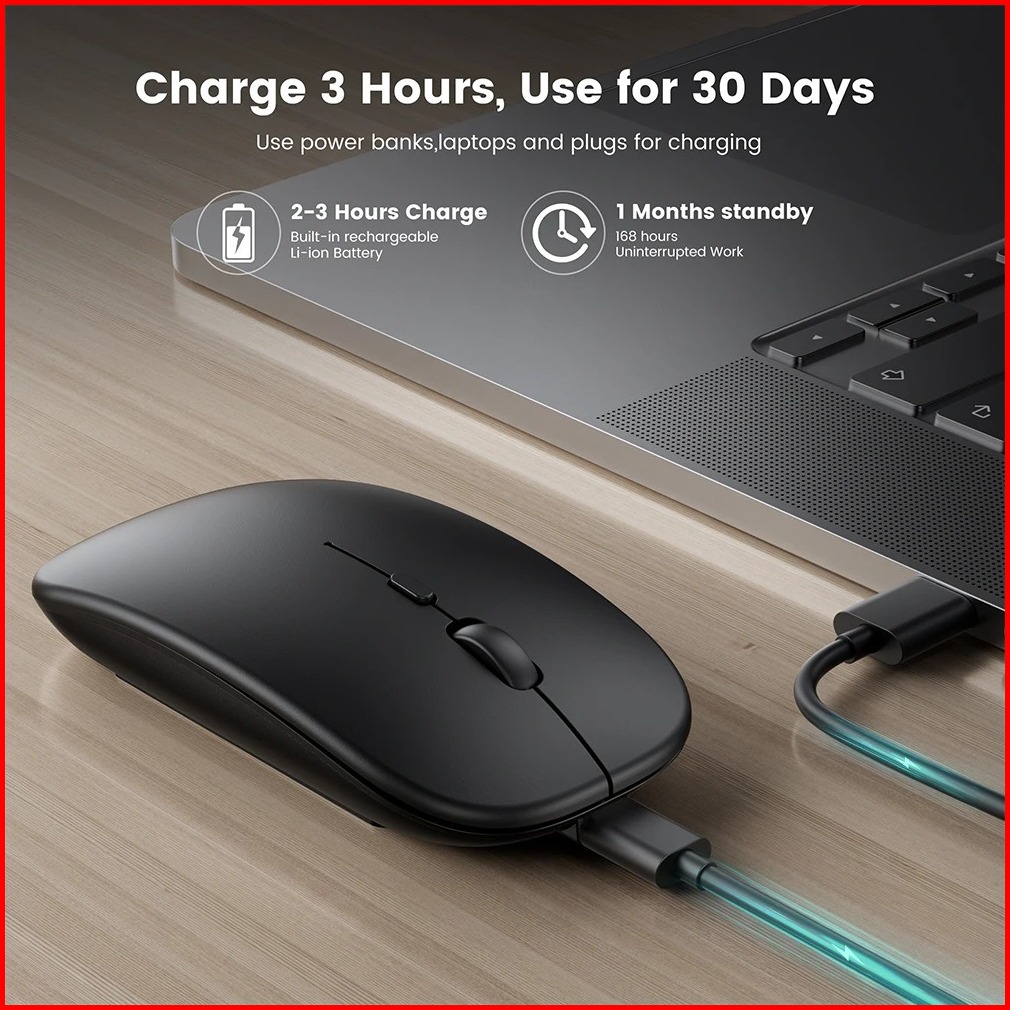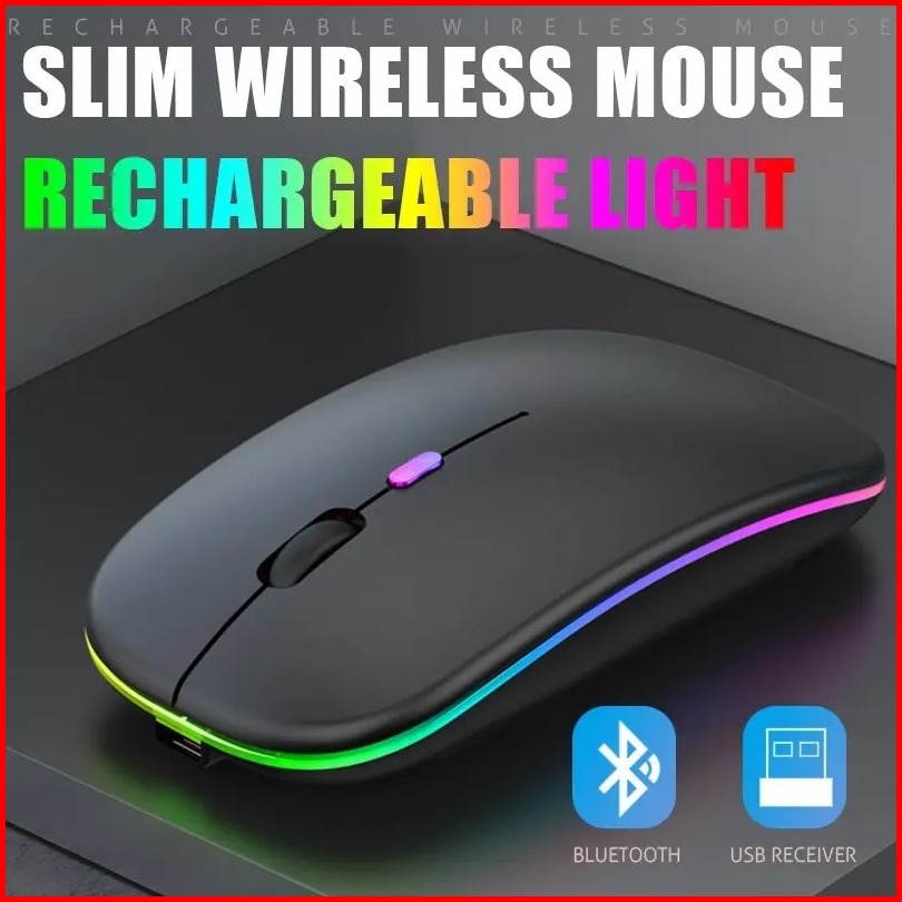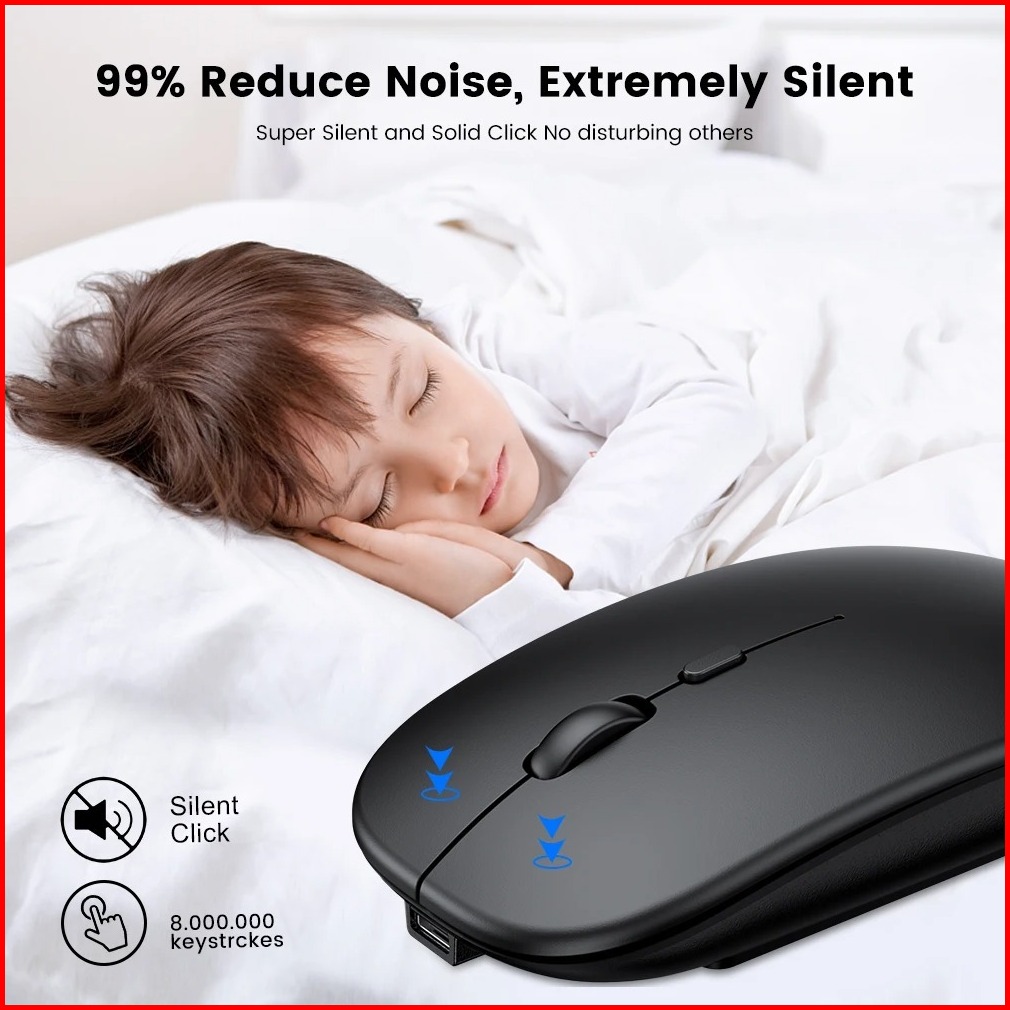 Mouse Bluetooth Blutut Wireless Silent Click Rechargeable Laptop Komputer Pc