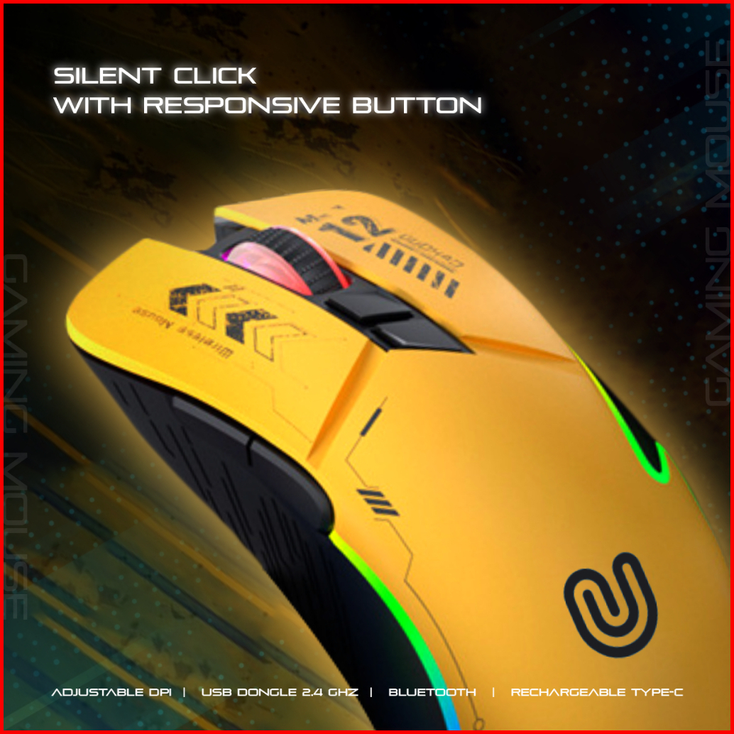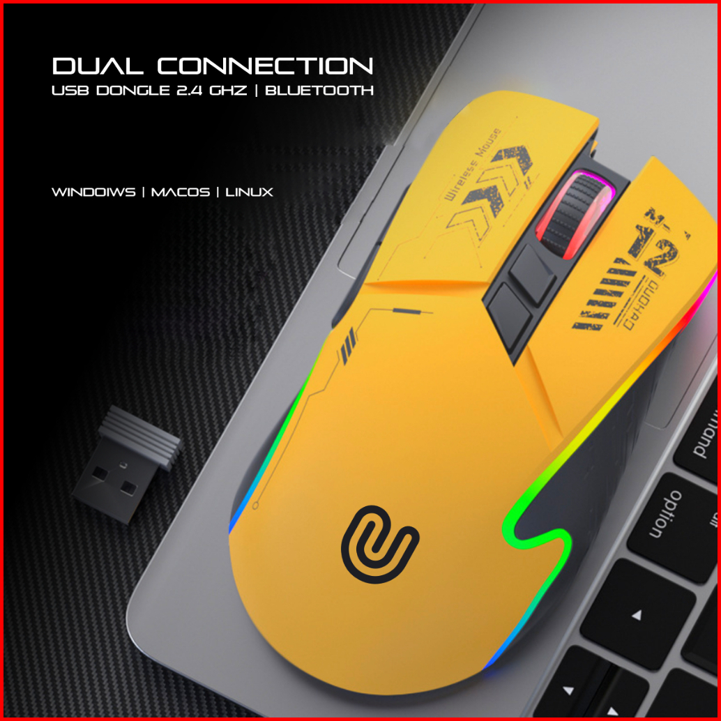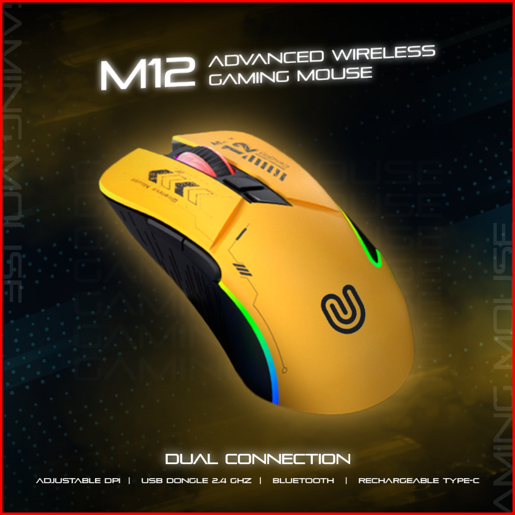 Unitech Mouse Bluetooth Wireless Gaming Rechargeable M12 Dual Connection Silent Click 1600 Dpi Rgb
