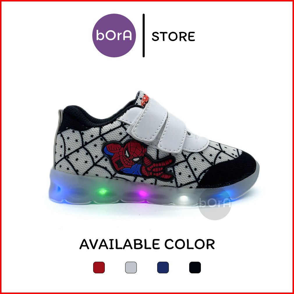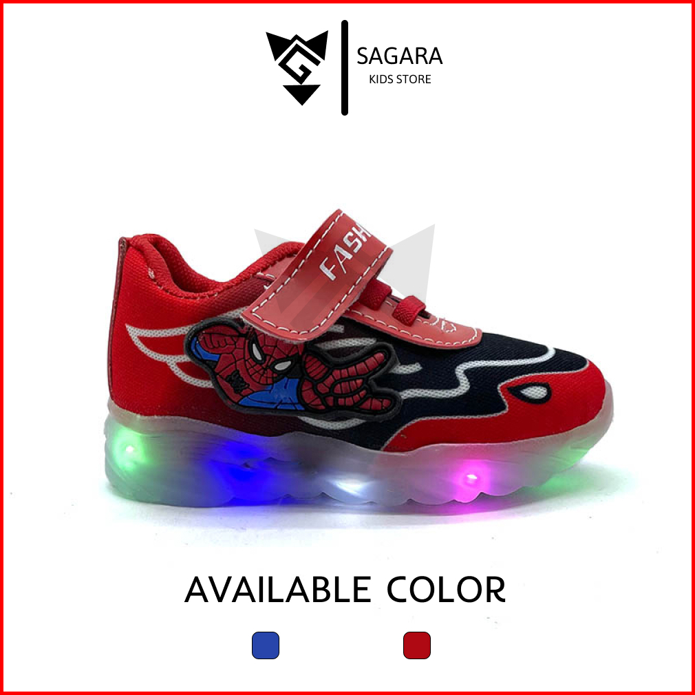 Sepatu Anak Lampu Led Spiderman Sneaker Sport Casual Size 21-33 1-6 Tahun