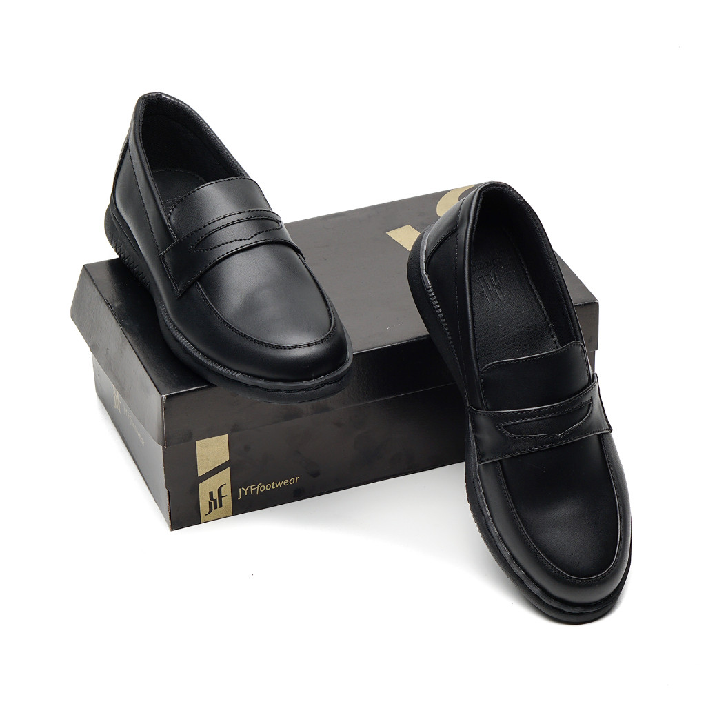 [Mall] JYF Well Black Sepatu Slip On Pantofel Pria Kulit Formal untuk Kerja Resmi Kuliah & Kondangan