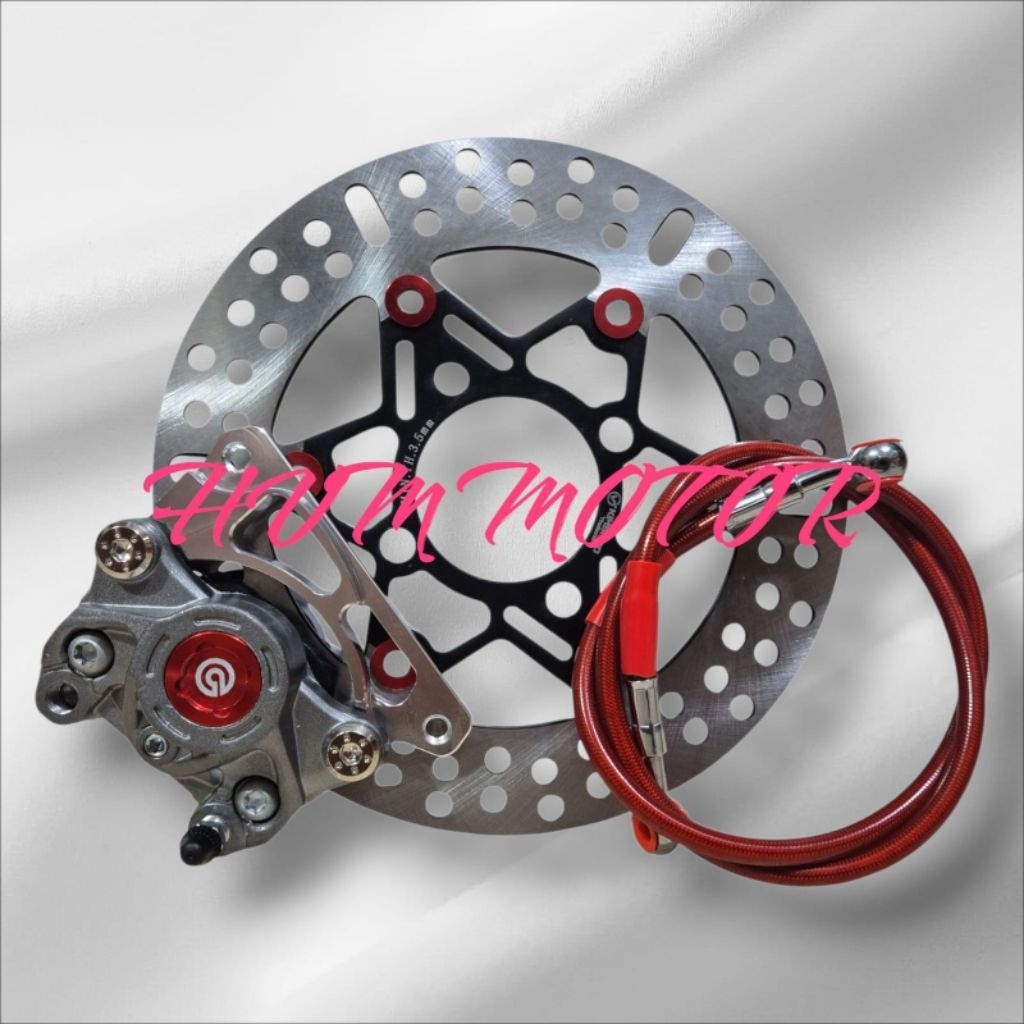 (PAKET) Kaliper 2piston+Breket+Piringan 220+ Selang Motor Scoopy Beat Fi Vario 110 125 150 Mio Soul Mio Smile Mio Soul G