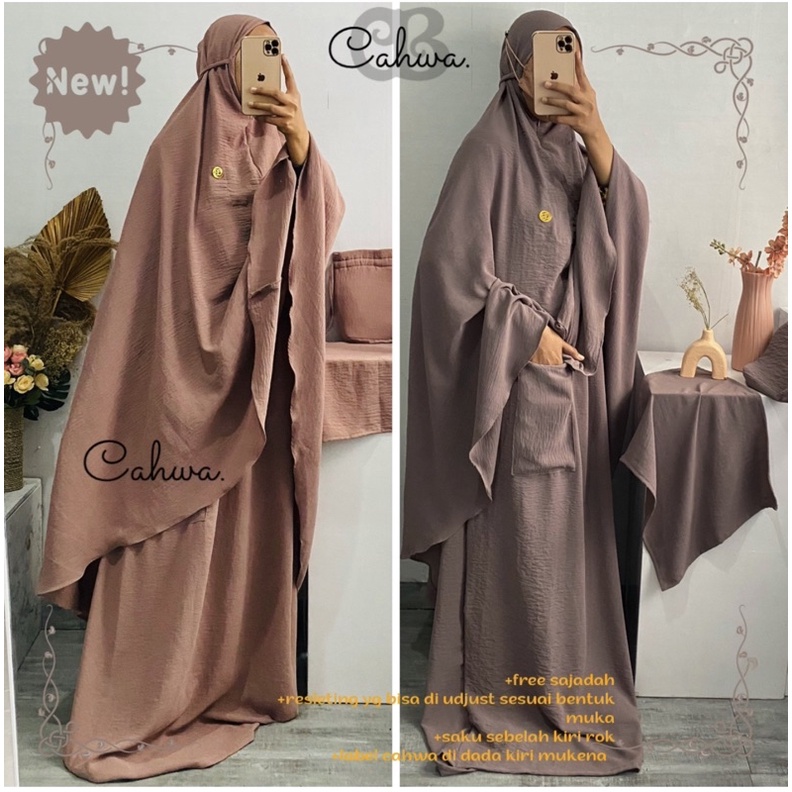 ZAHWA Mukena crinkel premium 2in1 JUMBO FREE sajadah FREE tasbih mukena crinkle prayer set mukena los mukena saku los mukena bergoww
