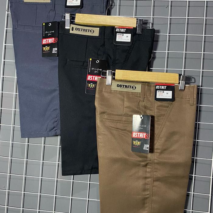 100 Dapet 3Pcs Celana Pendek Chinos Drill Non Strech Katun Polos Tidak Melar Pria Santai Casual Shorts - Hitam,Abu,Crem,