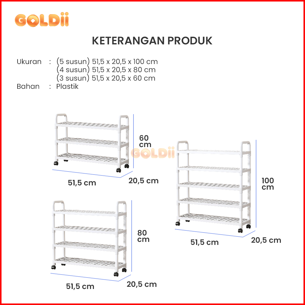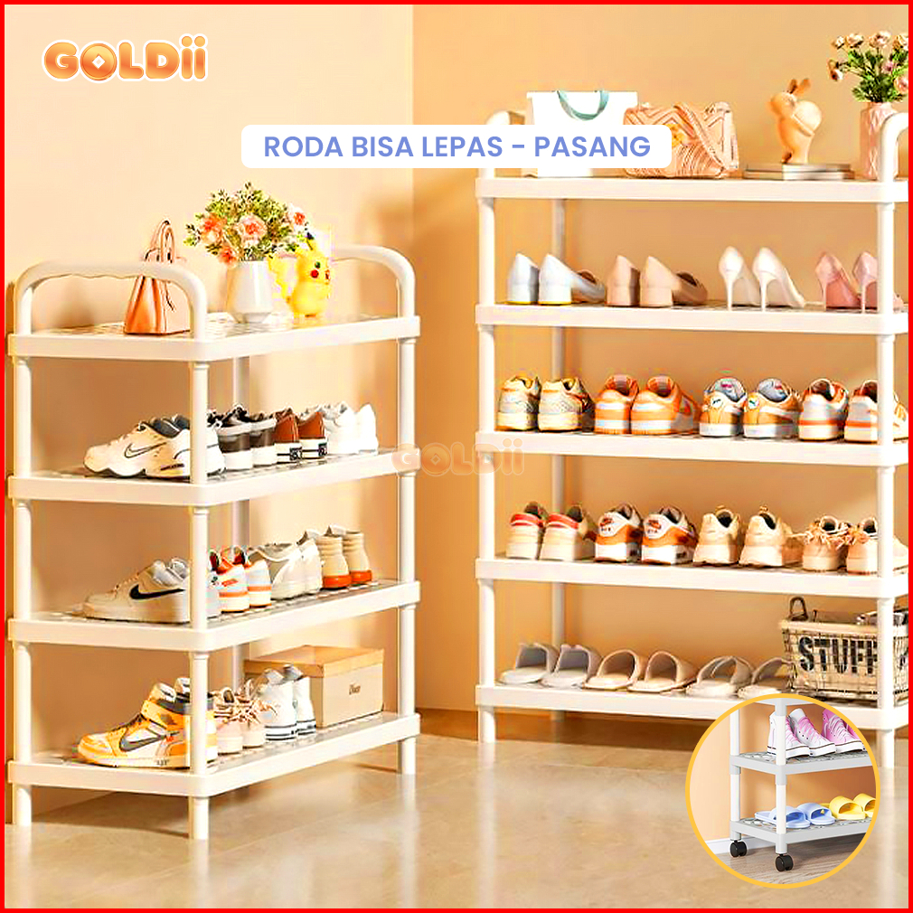 Goldii - Rak Sepatu 5 Tingkat Plastik Serbaguna Rak Sandal Multifungsi Kuat Estetik Hemat Ruang