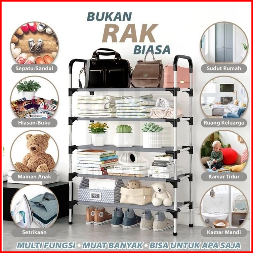 Rak Sepatu 5 Susun Stainless Anti Karat Portable Bisa Holder Payung