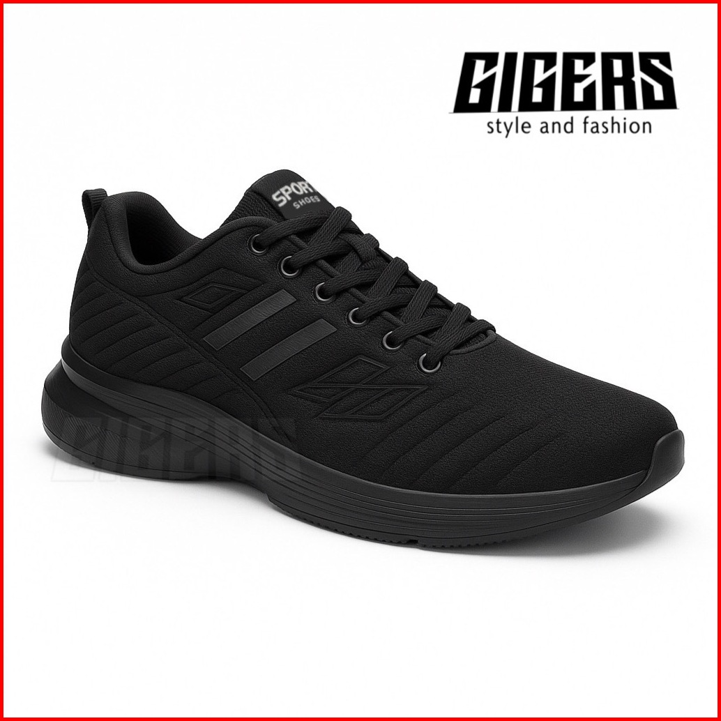Gigers Sepatu Sneakers Pria Wanita Hiruzen Black Sepatu Walking Olahraga Hitam Sepatu Sekolah Kerja