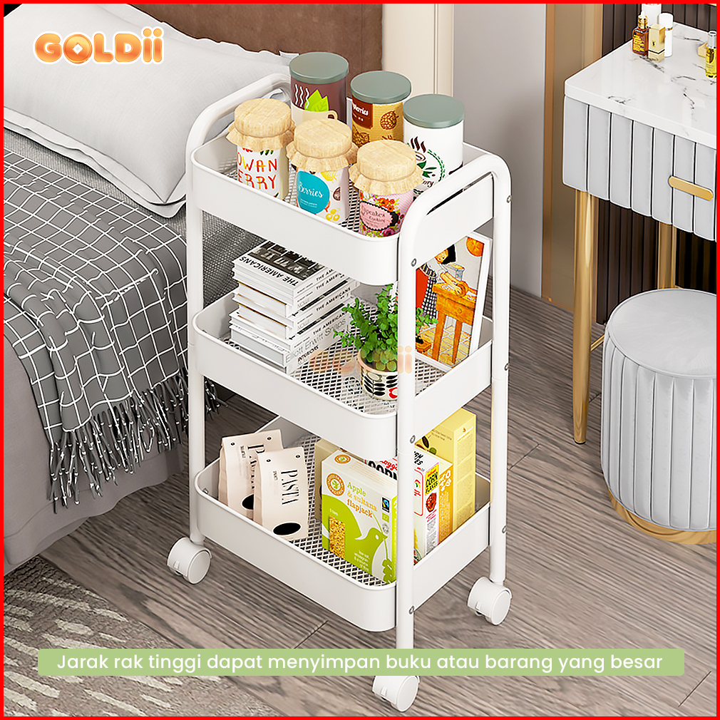 Goldii - Rak Troli Dorong Dengan Roda Susun 5 Tingkat Serbaguna Rack Dapur Bahan Besi Berkualitas