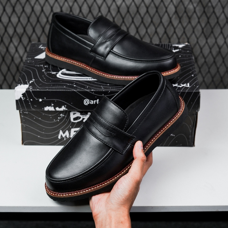 [Mall] ARF Alpine Black Sepatu Loafers Slip On Pria Kulit Formal Pantofel untuk Kerja Kantor Nikah & Kuliah
