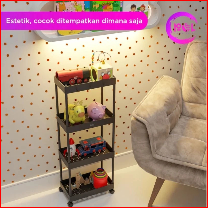 Rak Susun Dorong Yeye 4 Susun Tingkat Serbaguna Stacking Shelves Rak Dapur Salon Kantor Kamar Mandi Kosmetik Baju Celana