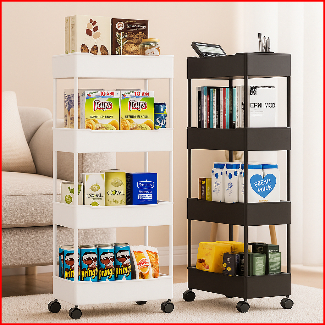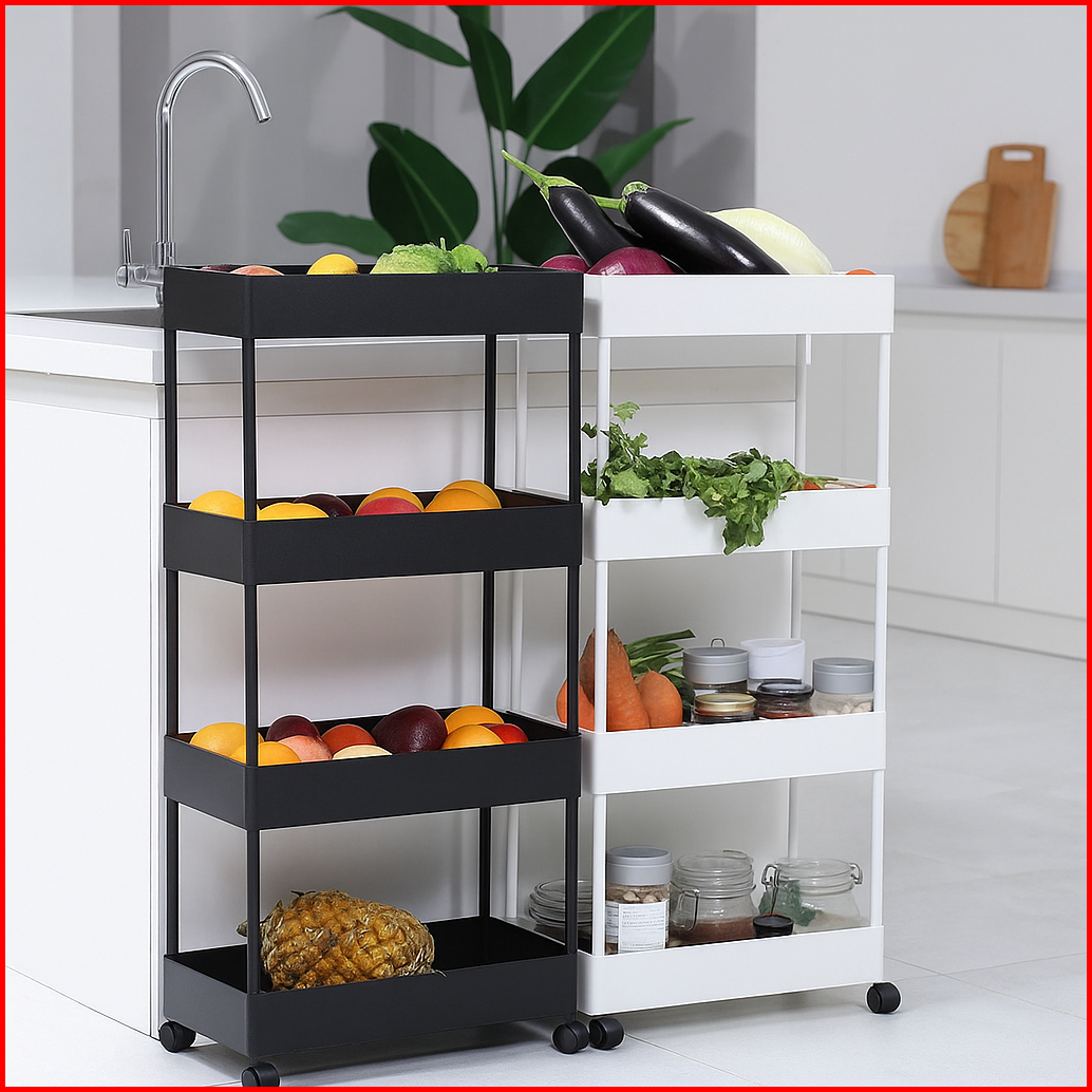 Rak Susun Serbaguna 4 Tingkat Dengan Roda Rak Troli Dapur Kamar Mandi Kokoh Tebal