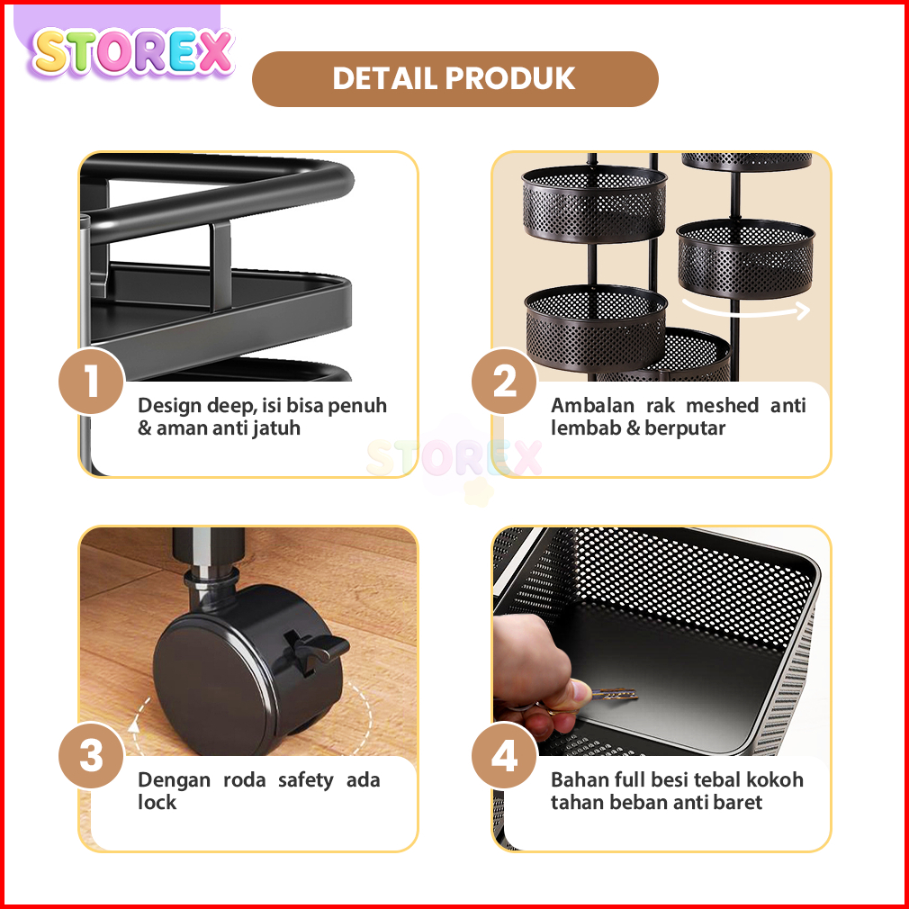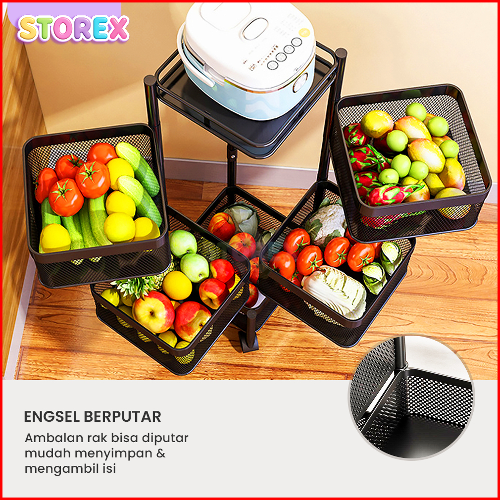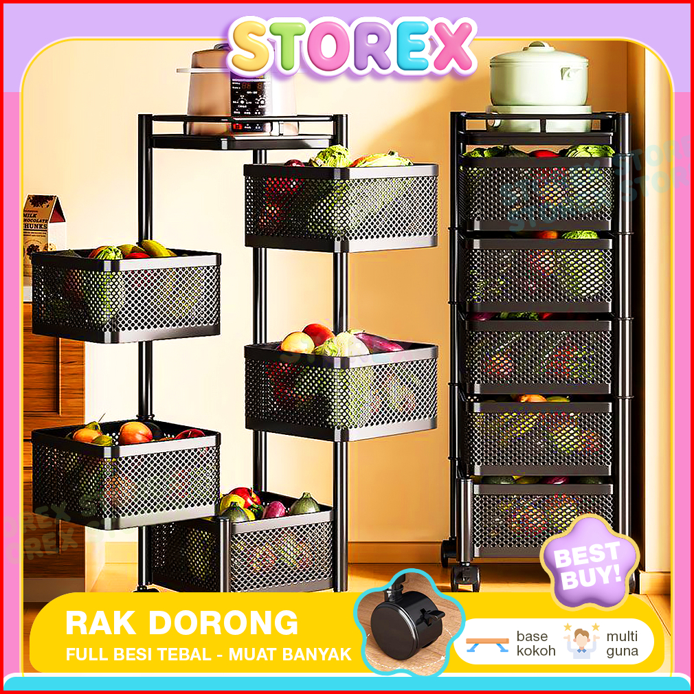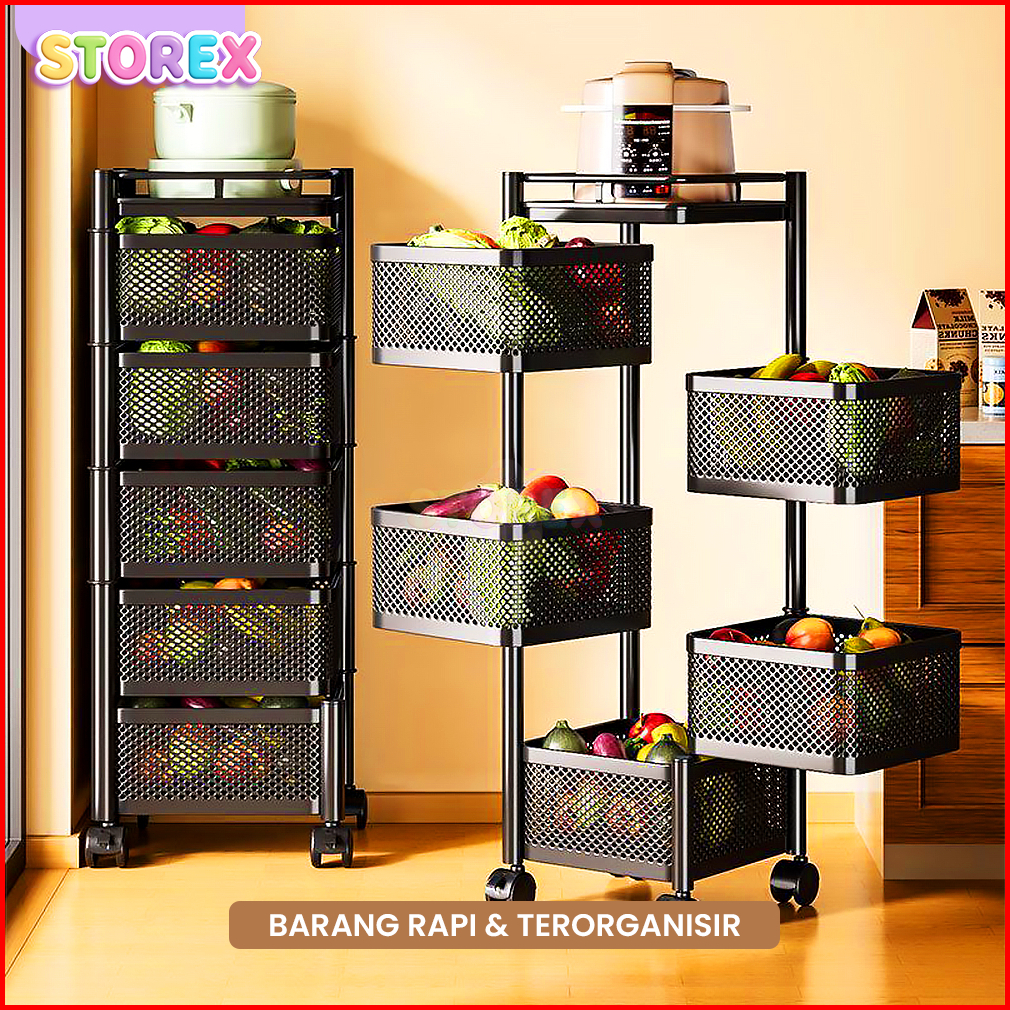Storex Rak Troli Susun Dapur Modern 5 Tingkat Serbaguna Beroda Ambalan Besi Putar Fleksibel Multifungsi