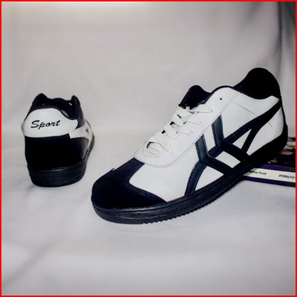 Sepatu Sneakers Casual Suede Cowok Deyuro Fashion Specta Hitam Putih