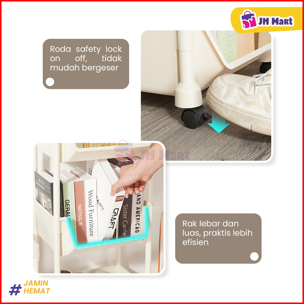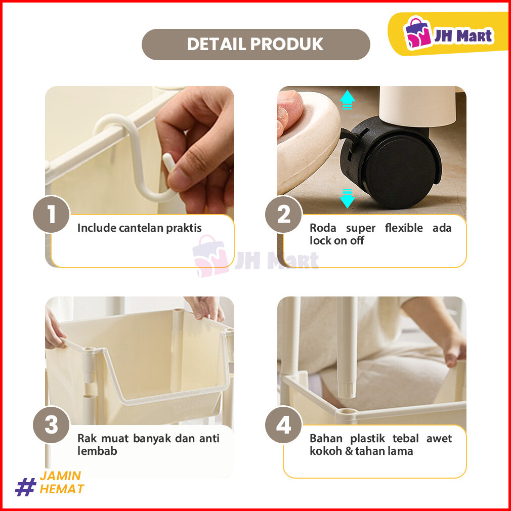 Jhm - Rak Susun Serbaguna 4 Tingkat Roda Rak Troli Rak Dapur Kamar Mandi Kokoh Dan Tebal