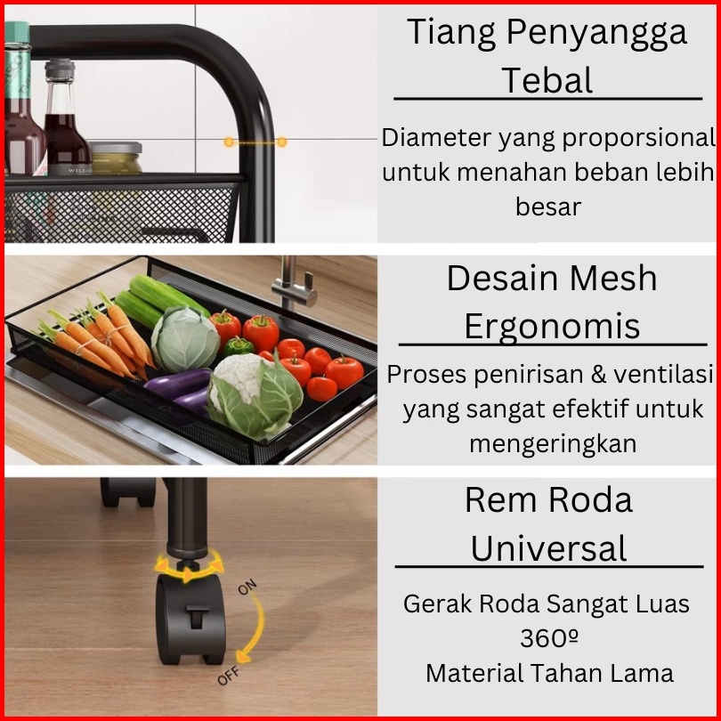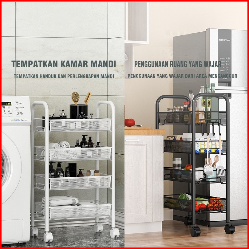 Olla Hom - Rak Lantai Beroda Rak Penyimpanan Serbaguna Rak Ruang Tamu