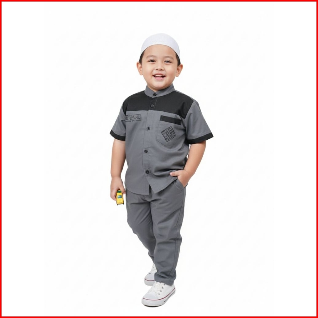Moszam Setelan Koko Anak Manjadda Grey Pendek Usia 1-10 Tahun