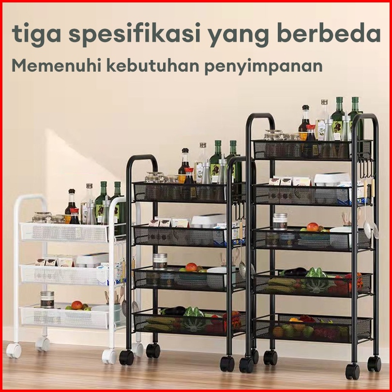 Rak Troli 3-5 Susun Rak Troli Susun Rak Roda Rak Lantai Beroda Rak Ruang Tamu Rak Penyimpanan