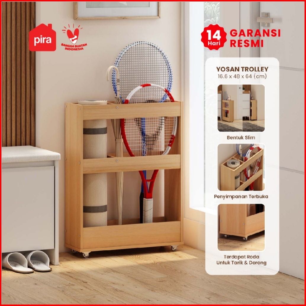 Pira Metropolis - Yosan Trolley Rak Troli Serbaguna Dengan Roda Rak Slim Rak Sempit Tempat Penyimpanan Alat Olahraga