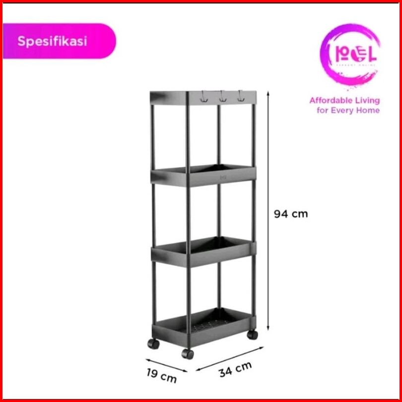 Rak Susun Dorong Yeye 4 Susun Tingkat Serbaguna Stacking Shelves Rak Dapur Salon Kantor Kamar Mandi Kosmetik Baju Celana