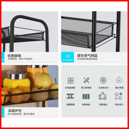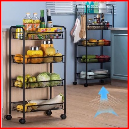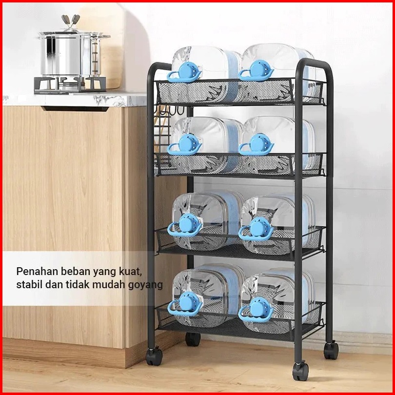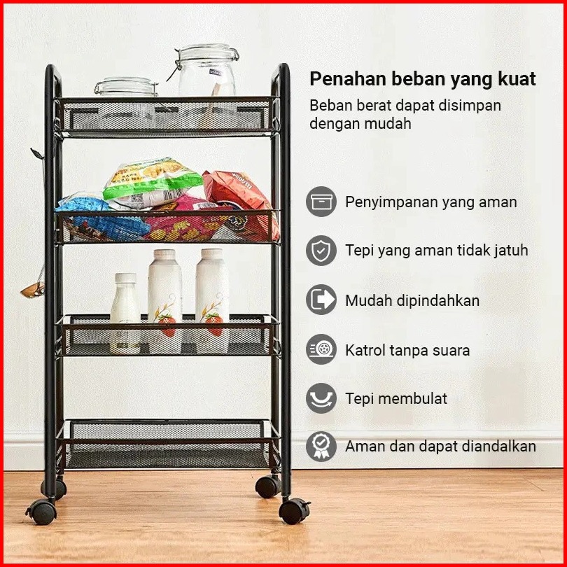 Rak Dorong 4 Susun Lantai Besi Kuat Troli Roda 4 Ginger Rack Trolley Dapur Salon Tanaman Serbaguna