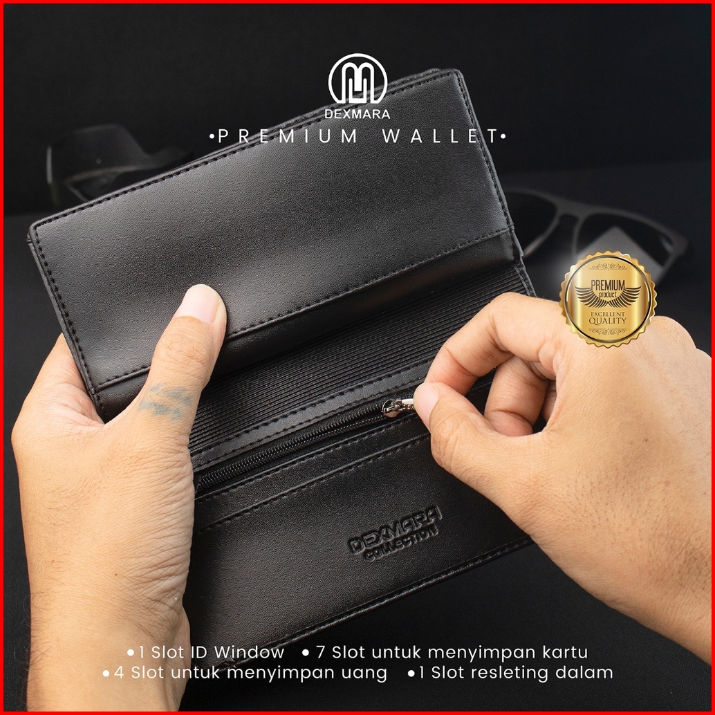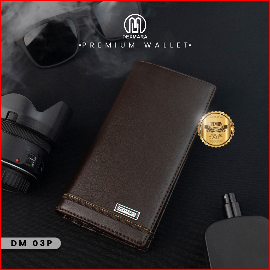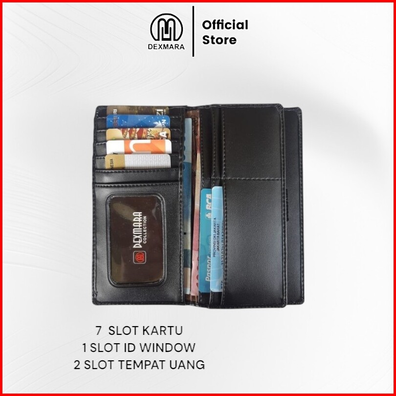 Dexmara Dompet Pria Panjang Banyak Slot Kartu Hitam Cokelat Bahan Kulit Sintetis Pvc Dm 03p
