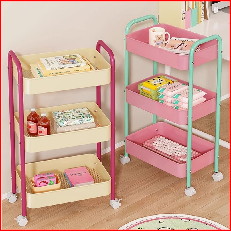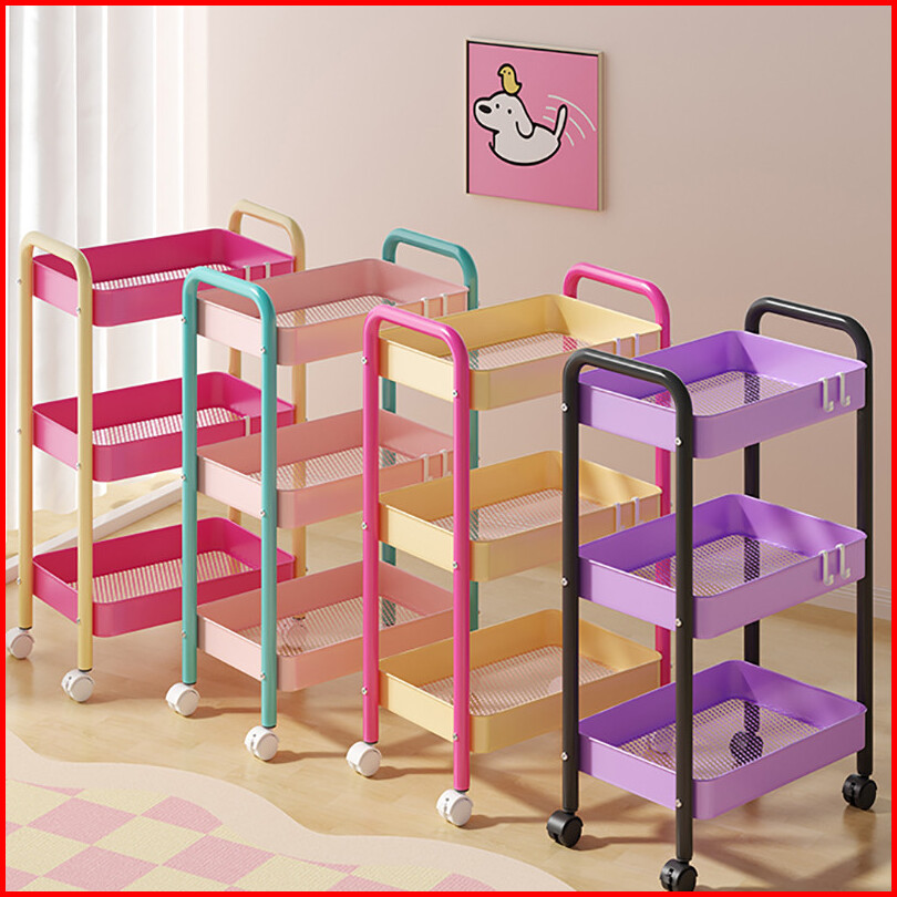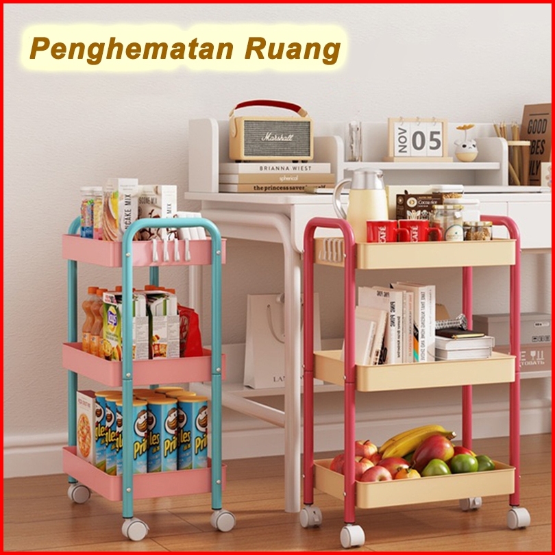 Trolly Rak 4 Susan 3 Susun Full Metal Rak Serbaguna Besi Rak Troli Dengan Roda Rak Susun Sserbaguna Warna Macaron Trolly