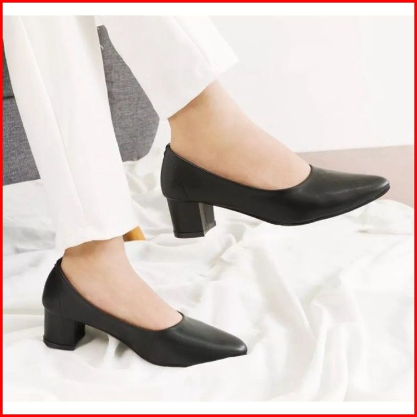 Sepatu Pantopel Wanita Hitam Polos Hak 5cm Ukuran 36-40