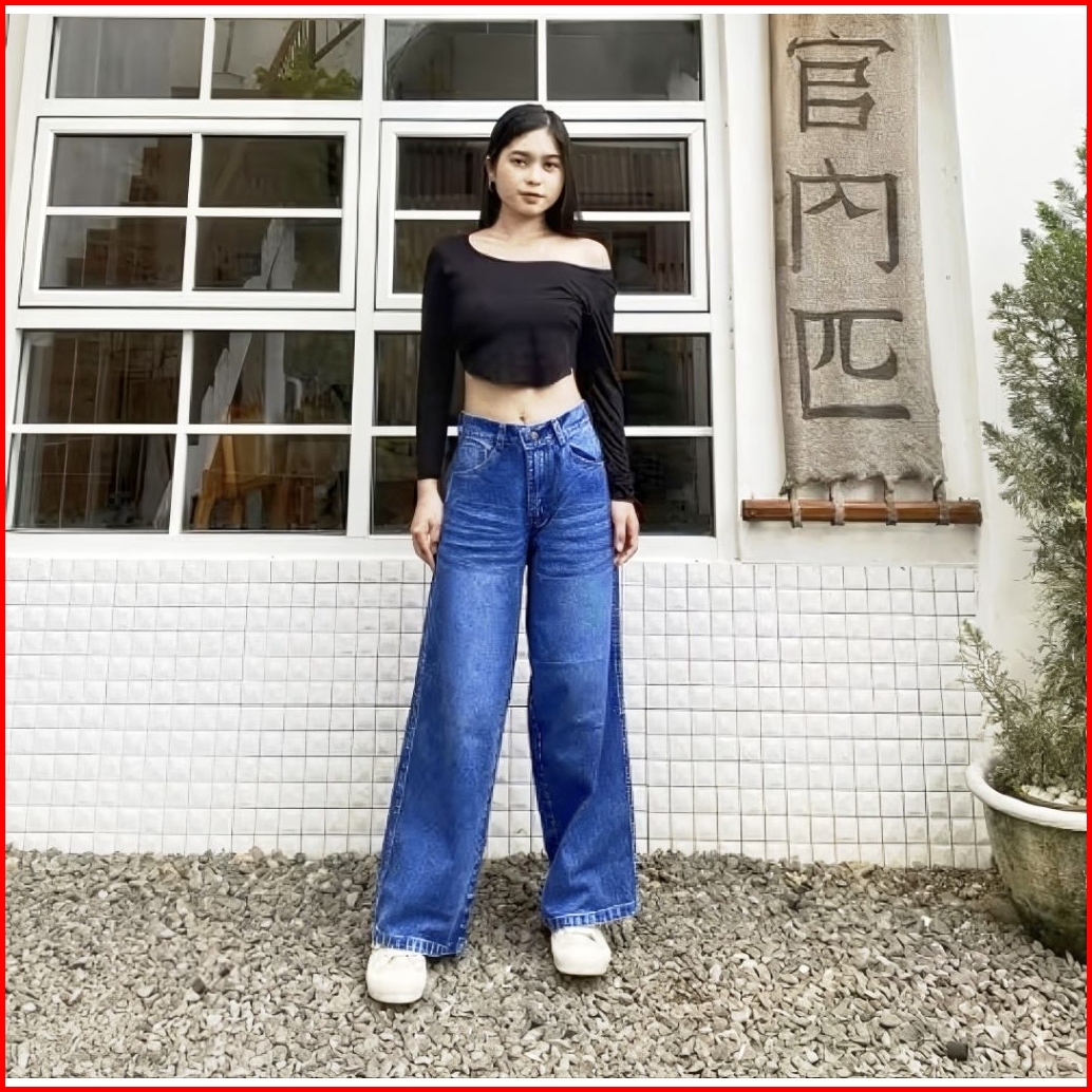 Highwaist Baggy Jeans Skena Wanita Celana Kulot Jeans Loosepants Gombrong Highwaist Non Strit