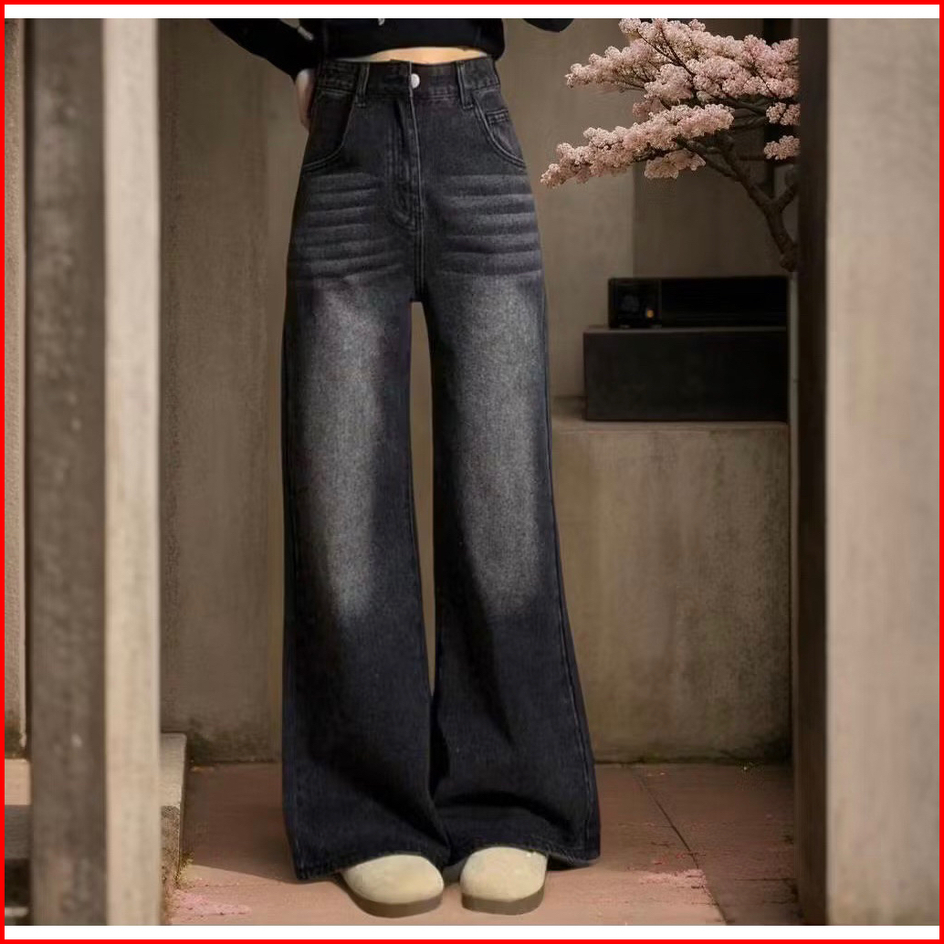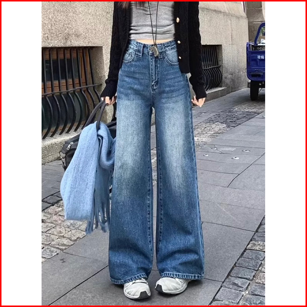 Highwaist Baggy Jeans Oversize Loose Retro Korean Baggy Straight Jeans Celana Jeans Wide Leg Wisker Lebar Gombrong Skena
