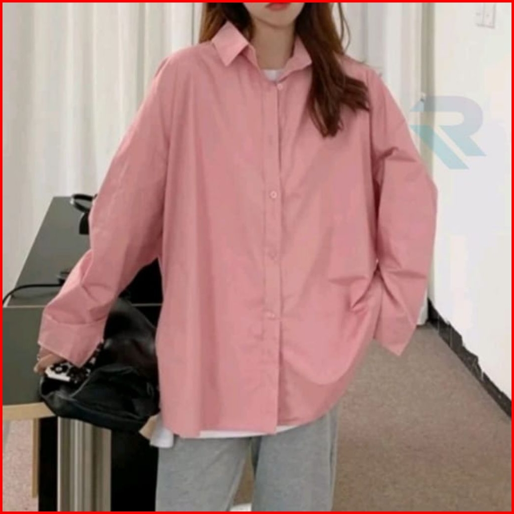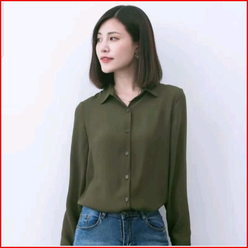 Kemeja Wanita Basic Polos Lengan Panjang
