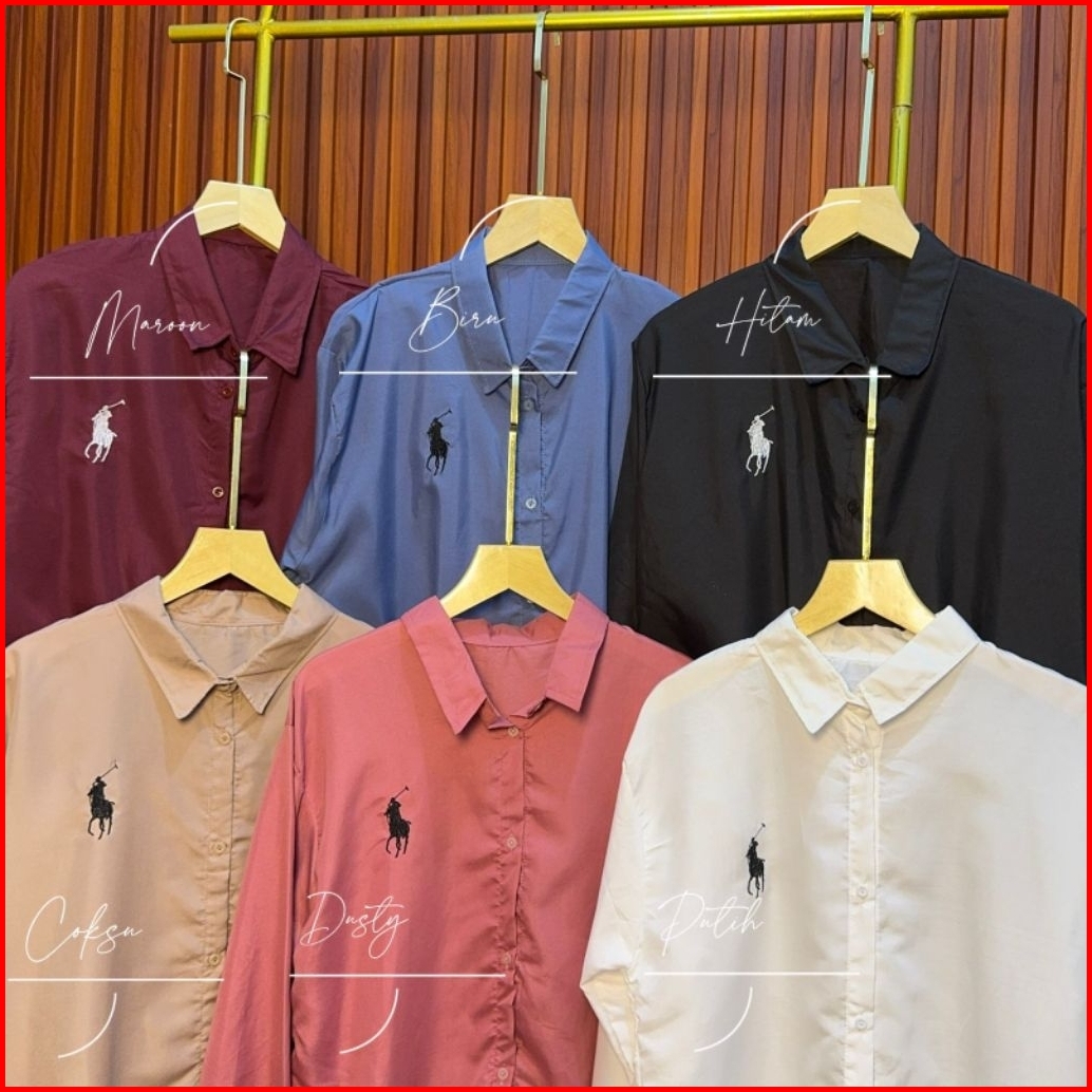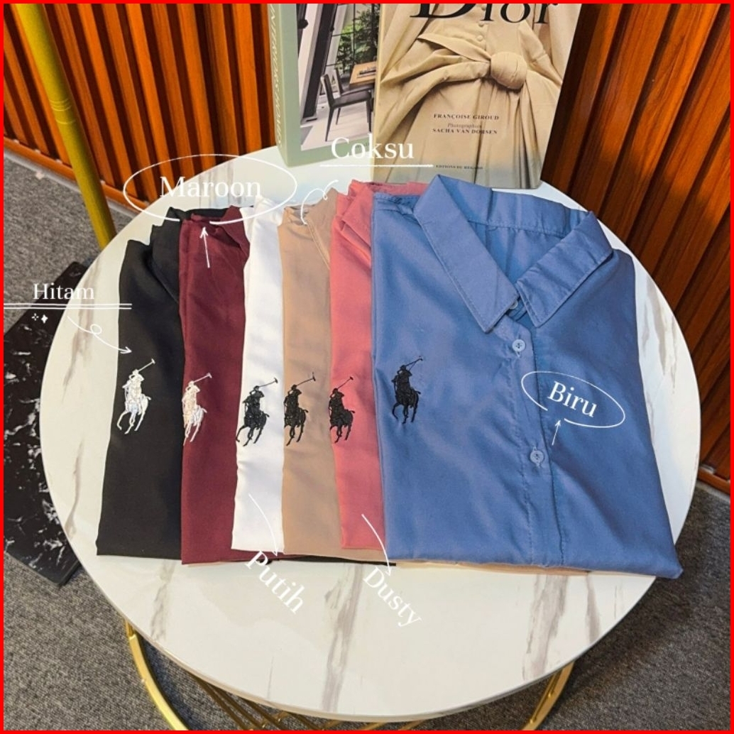 Kemeja Polo Wanita Bordir Premium Lengan Panjang