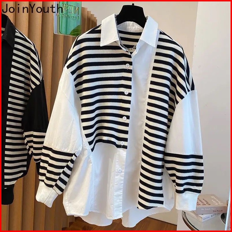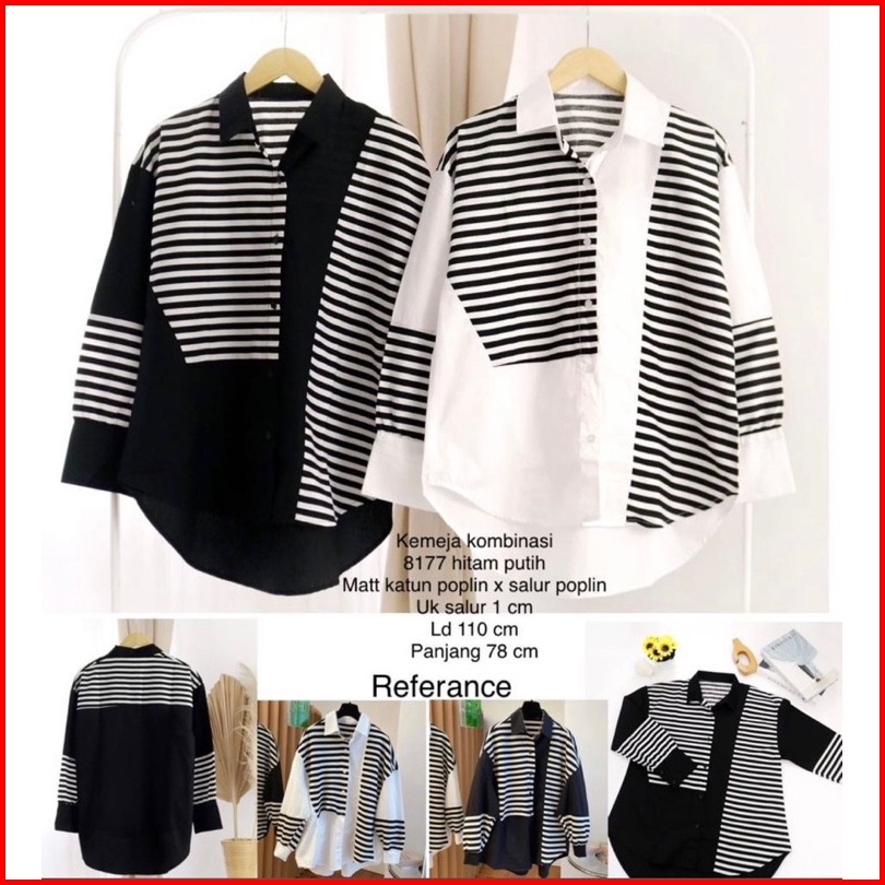 Premium Stripe X Katun 100 Premium - Kemeja Wanita 8177
