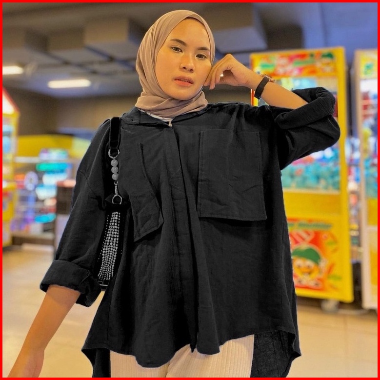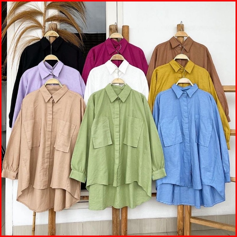Niki Shirt - Kemeja Linen 2 Pocket Kemeja Linen Oversize Areum Korean Oversize Kemeja Pocket Saku