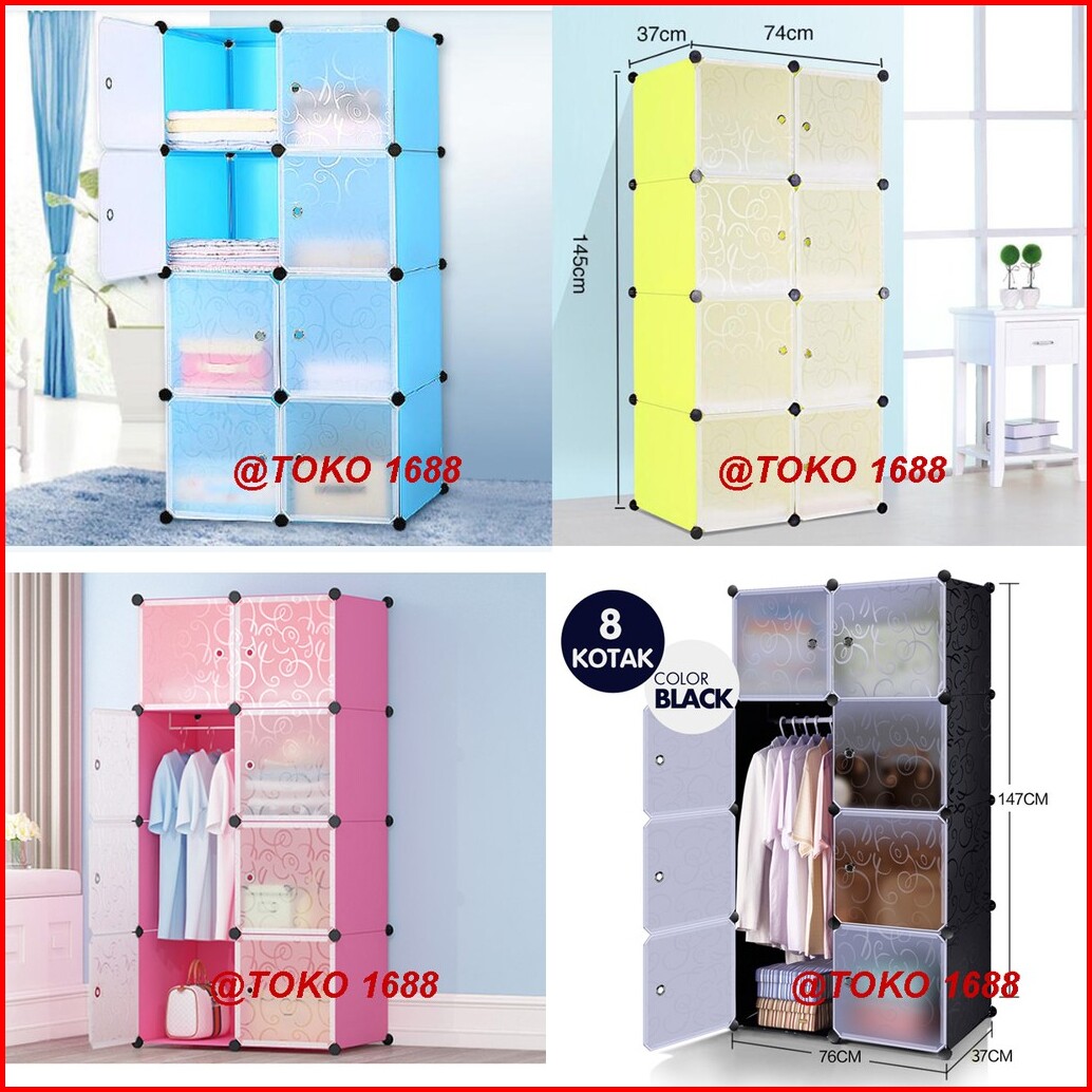 Lemari Pakaian Plastik Rak Serbaguna Susun Lemari Baju Anak 8 Pintu Kotak Susun