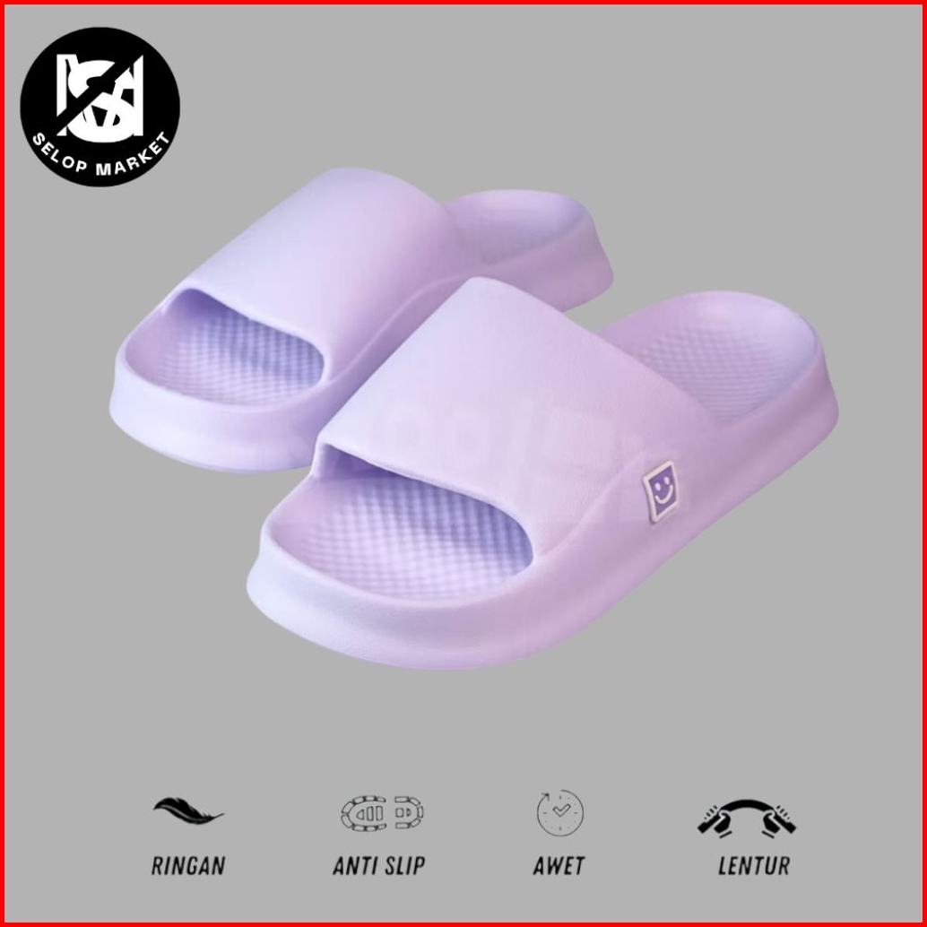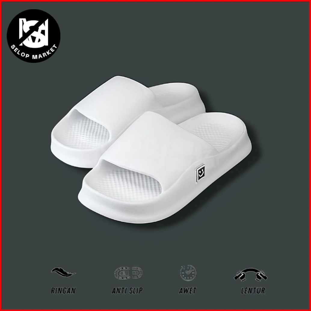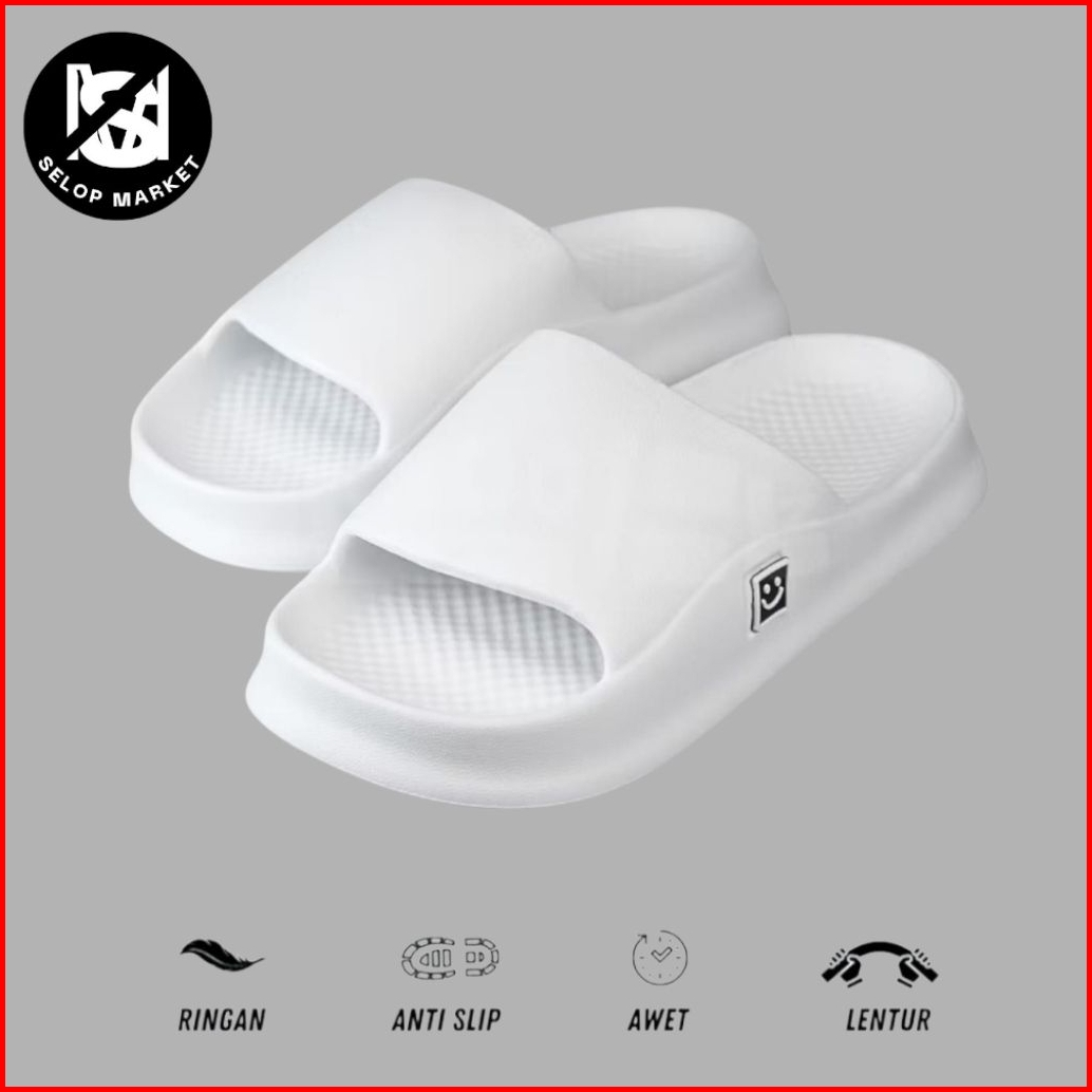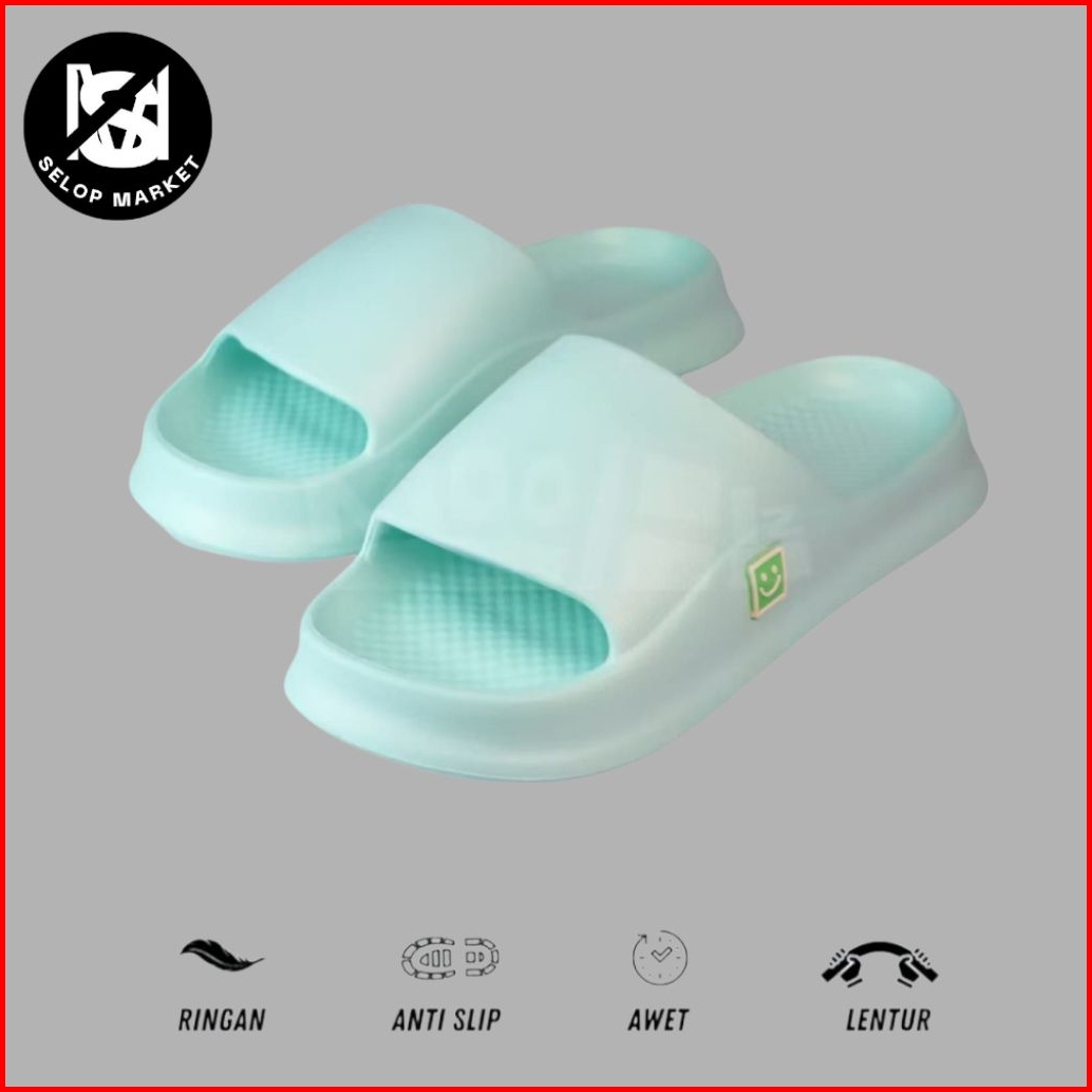 Sandal Selop Smile Pria Wanita Slip On 36-44 Full Karet Eva Anti Licin