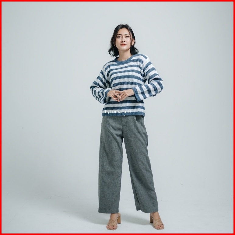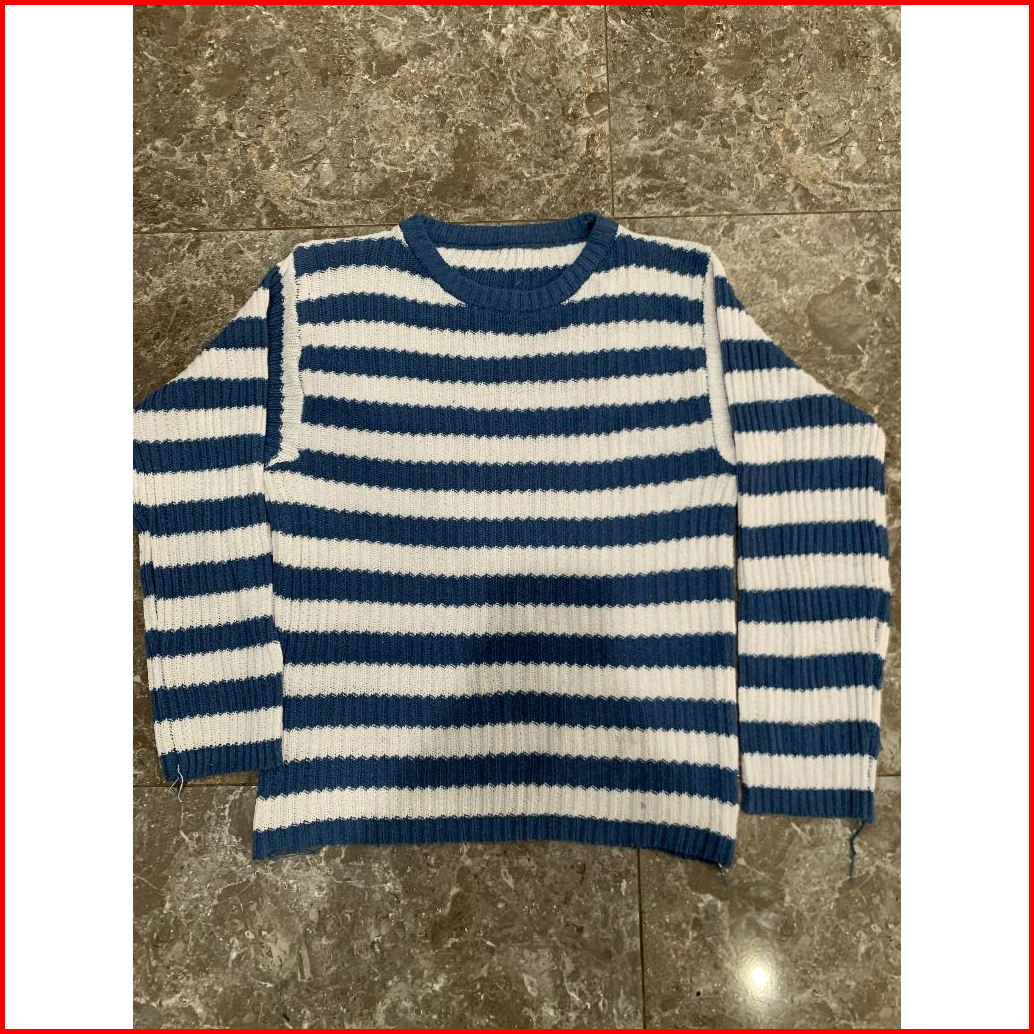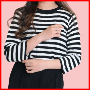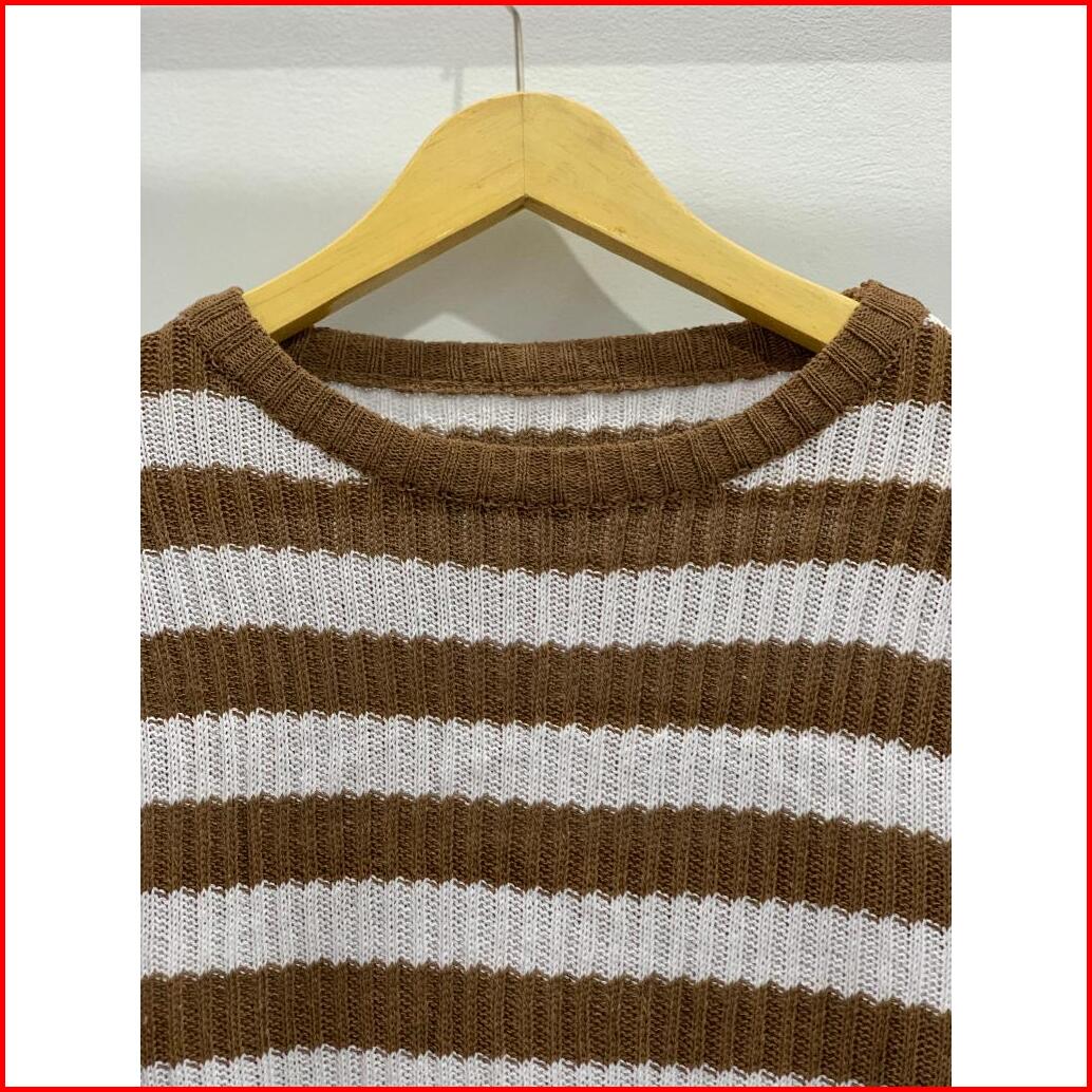 Sweater Rajut Oversize Baju Atasan Wanita Terbaru Lengan Panjang Korean Style Atasan 0blong Salur Wanita Kaos O-neck Kni