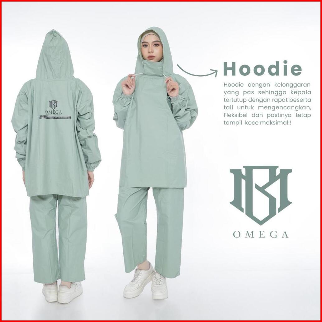 Omega Jas Hujan Terbaru Model Hoodie Bahan Pvc 0 25 Tebal Elastis Setelan Pria Wanita Anti Rembes