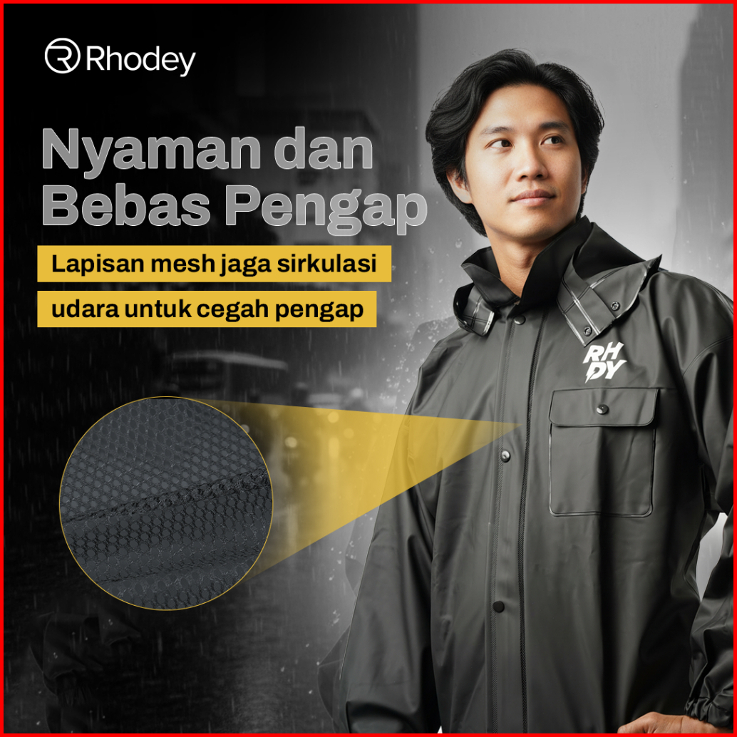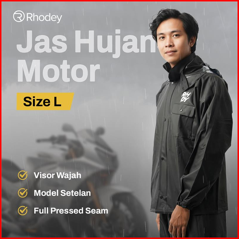 Rhodey Jas Hujan Motor Setelan Pvc Raincoat Full Pressed L With Hood - Rd-120
