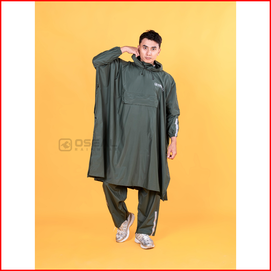 Oseal Jas Hujan Ponco Kelelawar Jumbo Pria Wanita Dewasa Full Seal Noctula Series Hijau