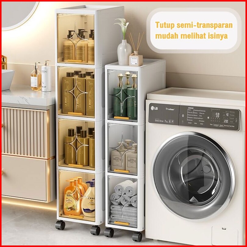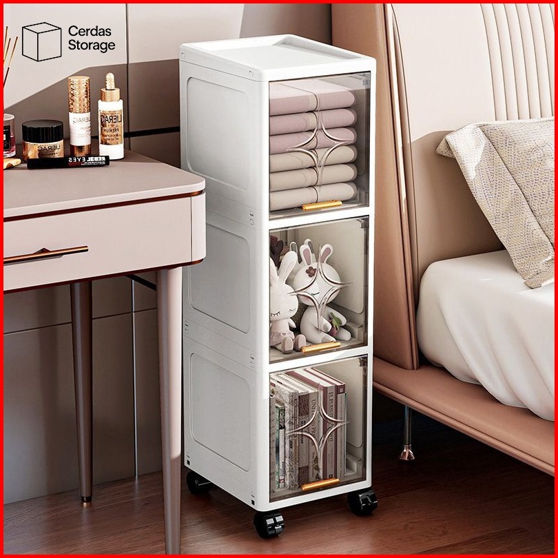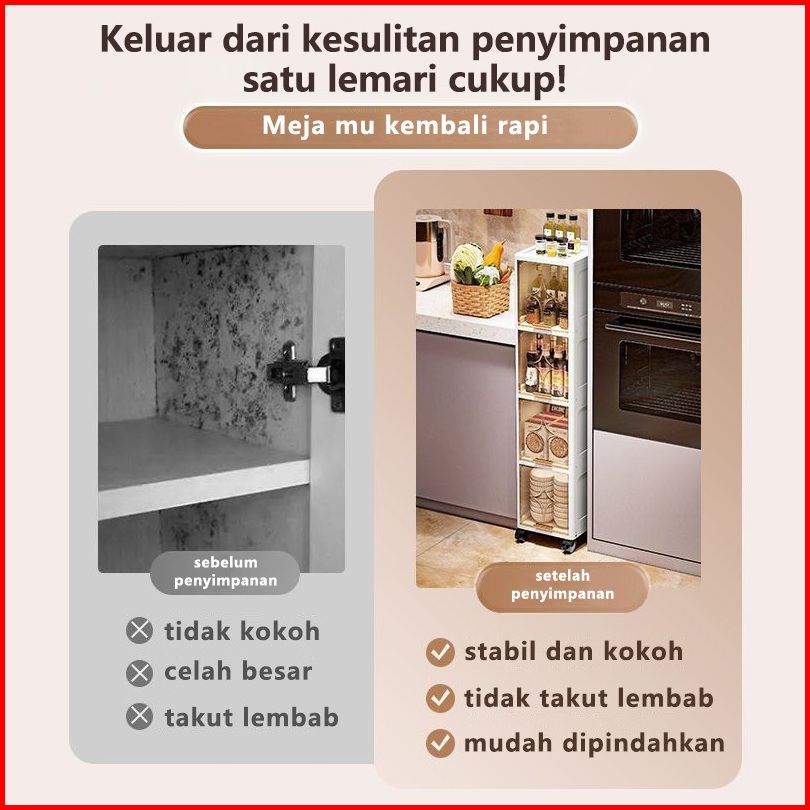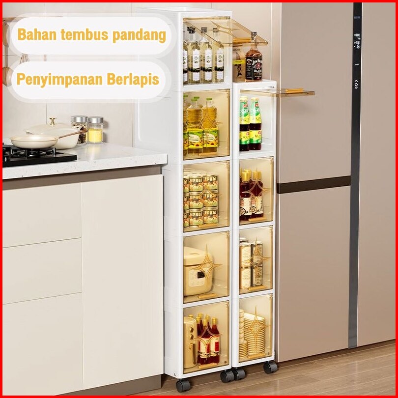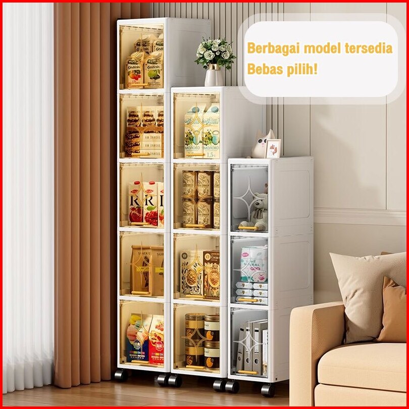 Lemari Plastik Estetik Lemari Plastik Dapur Susun Multifungsi Lemari Celah Transparan Dengan Roda