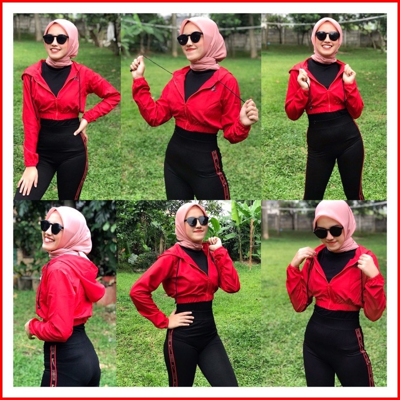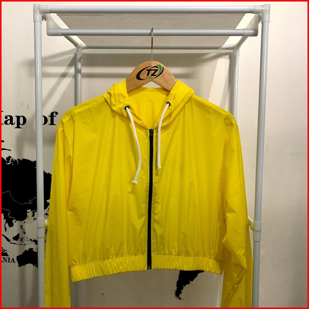 Jaket Crop Wanita Parasut Hoodie Zipper Anti Uv Waterproof Running Jogging Gym Senam Aerobik