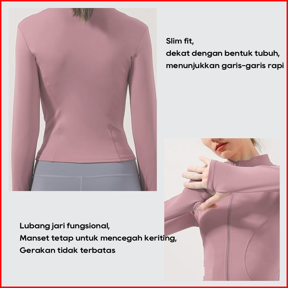 Aklover Jaket Olahraga Wanita Baju Gym Lengan Panjang Anti Uv Upf50 Jaket Yoga Fitness Sport