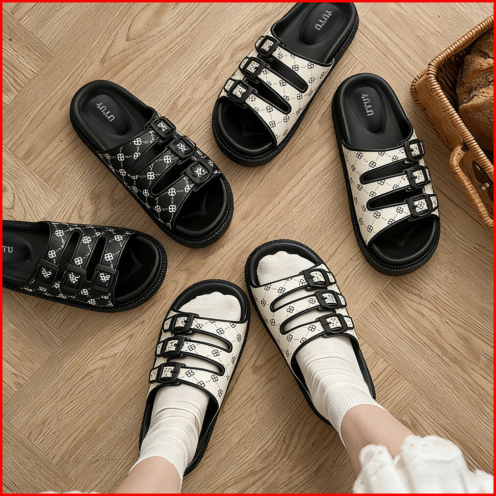 Sandal Slop Wanita Platform Terbaru Bahan Pvc Premium Model Slide Gesper Anti Slip Uk.37-41 2427-1 2426-7 2426-1-sandal