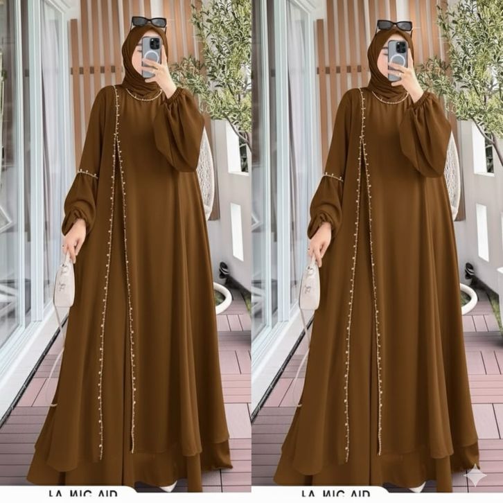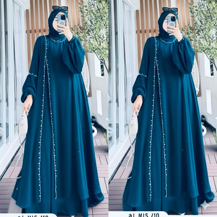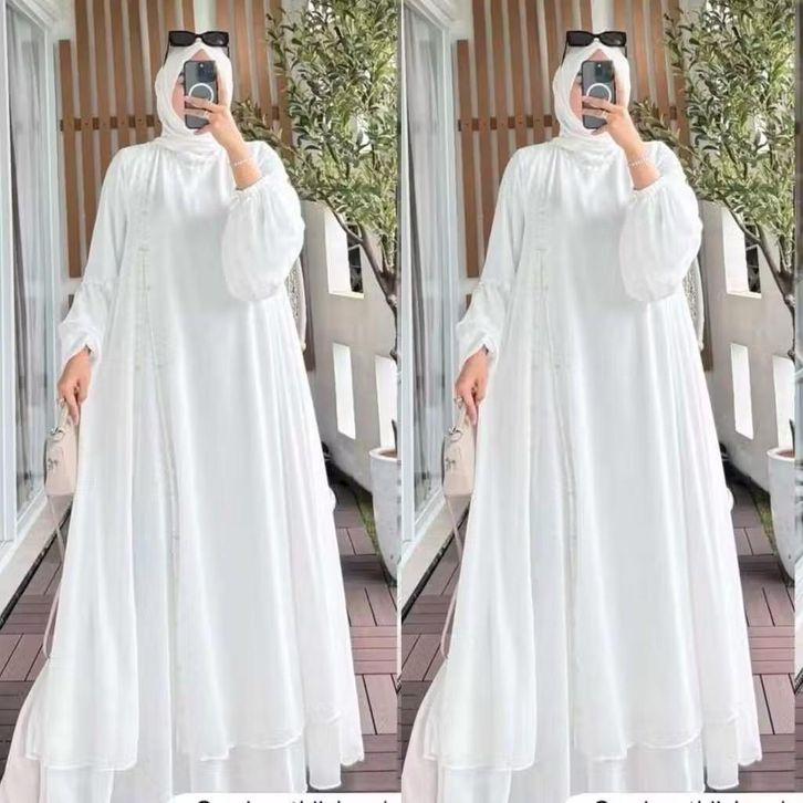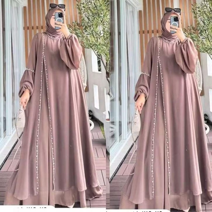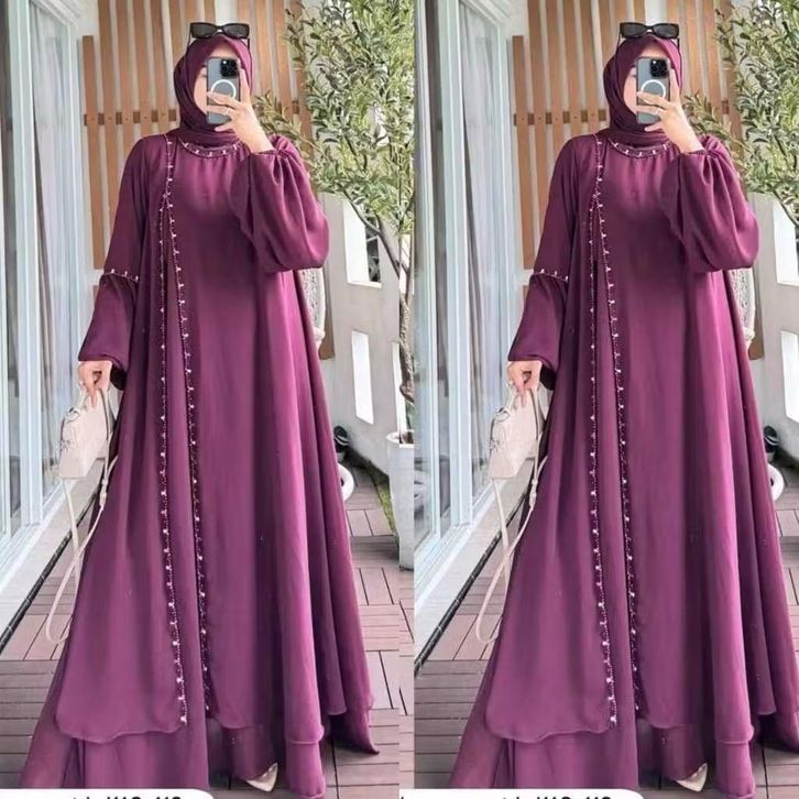 Natasya Dress Ceruty Babydoll Full Furing Abaya Kekinian Aplikasi Mute Mewah Pakaian Wanita Muslimah