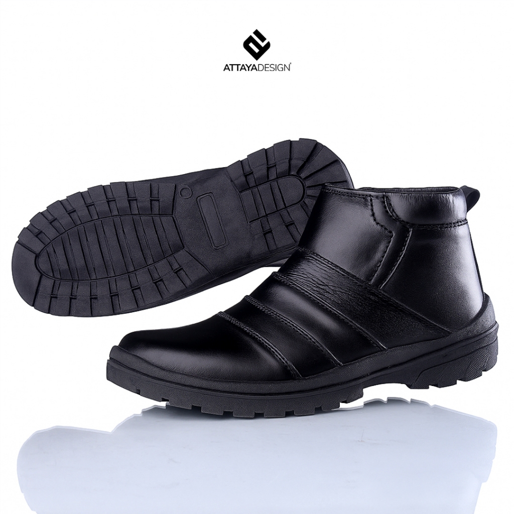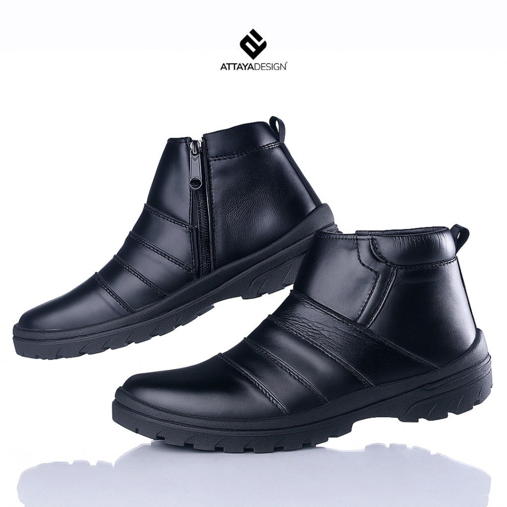 [Mall] ATTAYA DESIGN RS Sepatu Boots Pria Kulit Asli Hitam Tanpa Tali Fashion Original