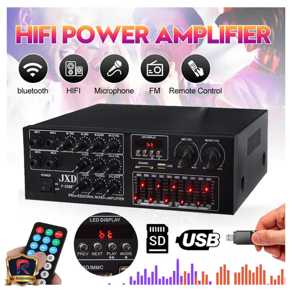 Amplifier F-328BT Garansi 1 tahun Bluetooth EQ Audio Home Theater karaoke FM Radio 2000 watt