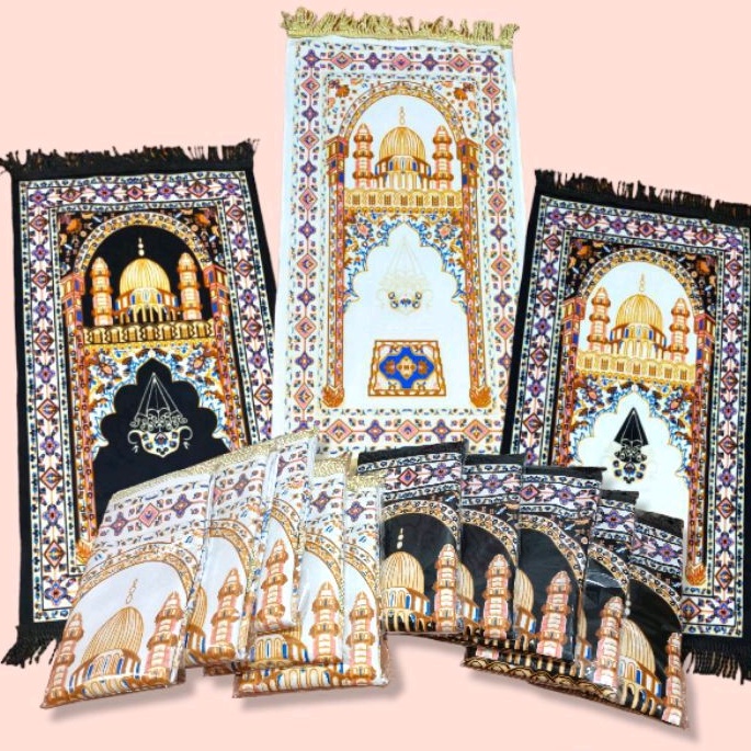 sajadah Suede mini free k kuningan mengkilap plastik